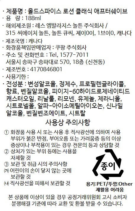 | 用法/保存方法 | 洗臉或刮鬍後, 取適量於掌心, 均勻塗抹於肌膚並使其吸收. | 成分 | 詳見內容 |