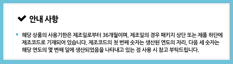 | 使用注意事項 | 詳見內容 | 保存期限/有效日期 | 本商品為該物流中心直接發貨商品, 製造日期和使用期限資訊會隨時變動, 請參考上方使用期限資訊. |