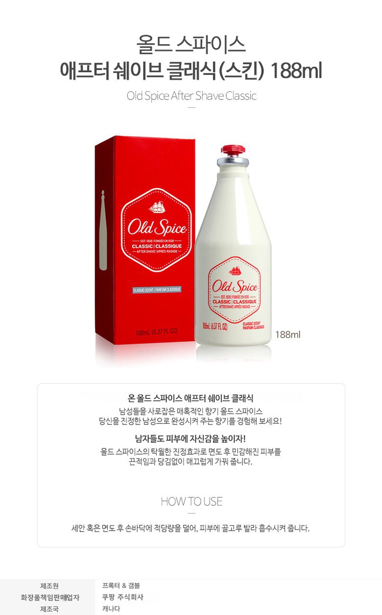 - 使用Old Spice鬍後水後,散發經典男士香氛,提升個人魅力,展現自信風采,持久留香。