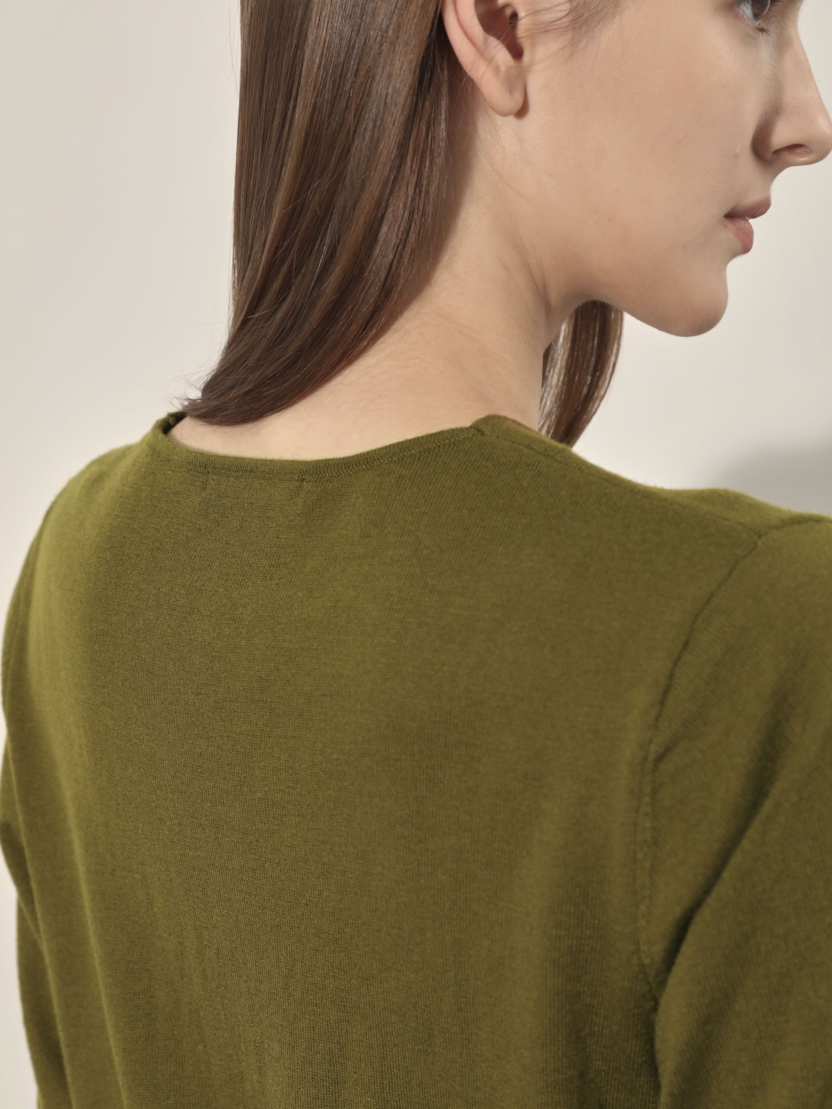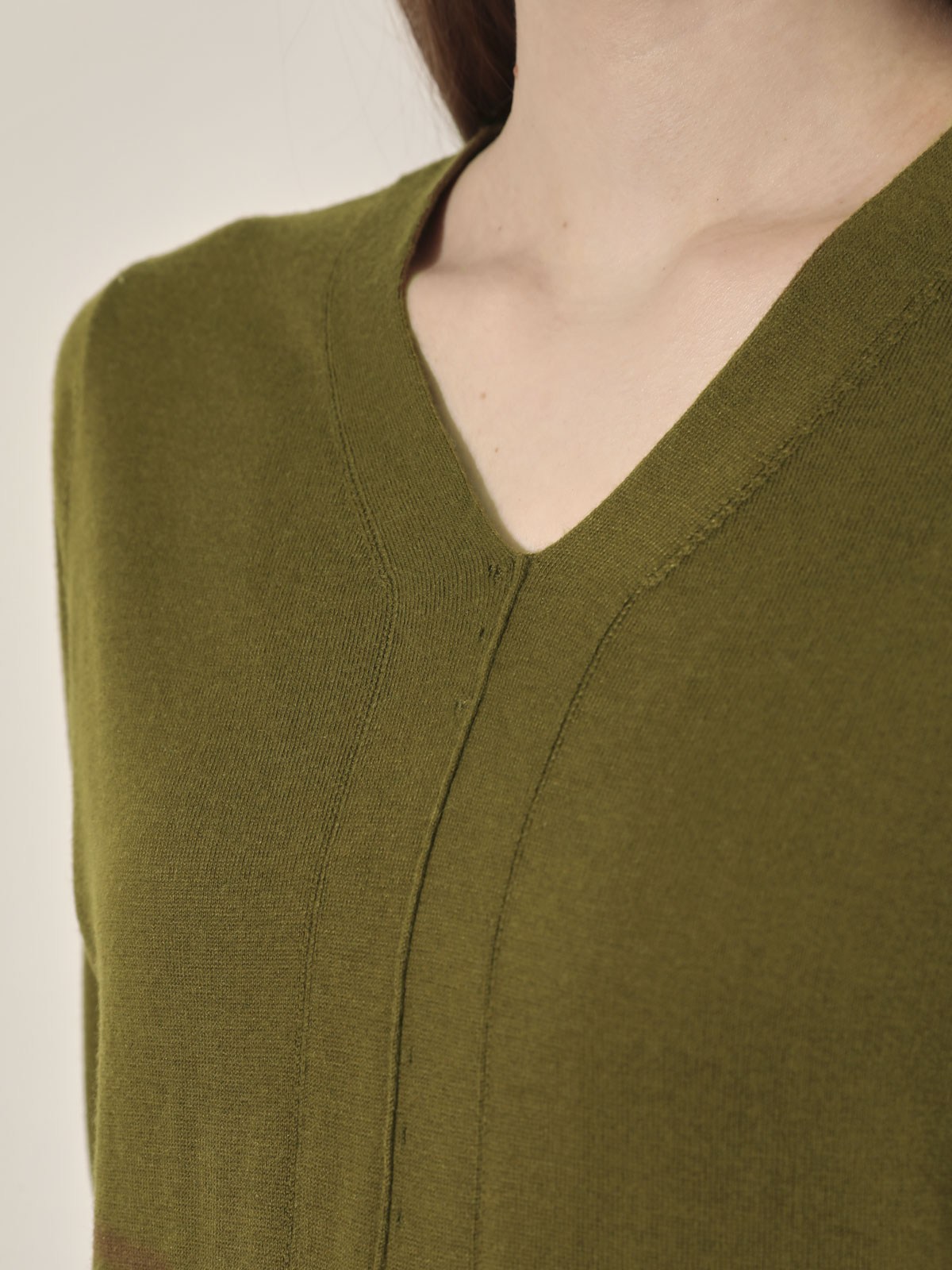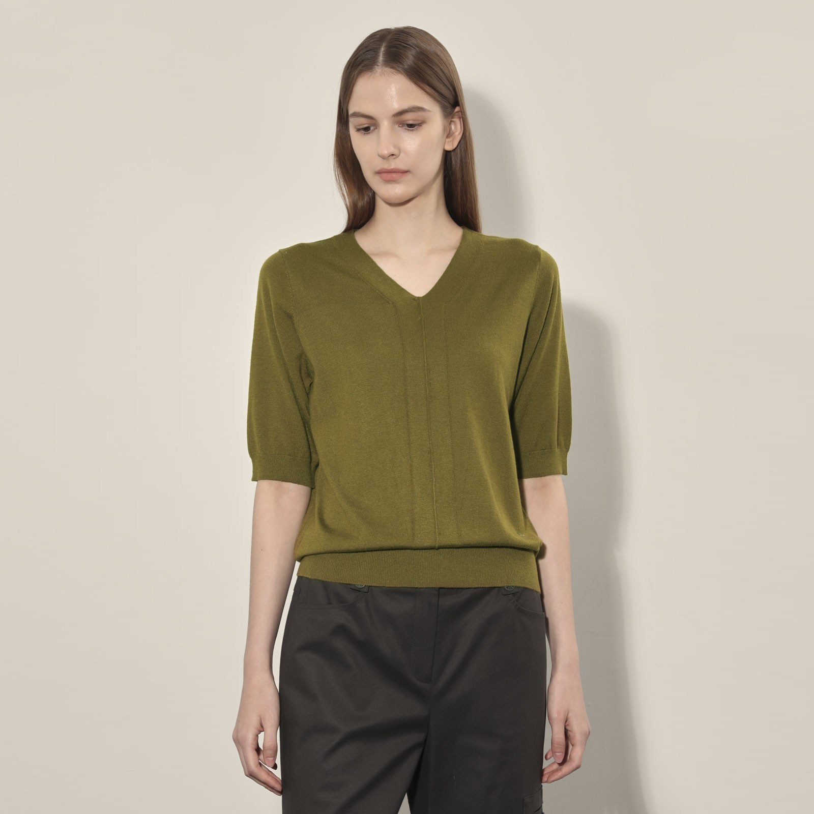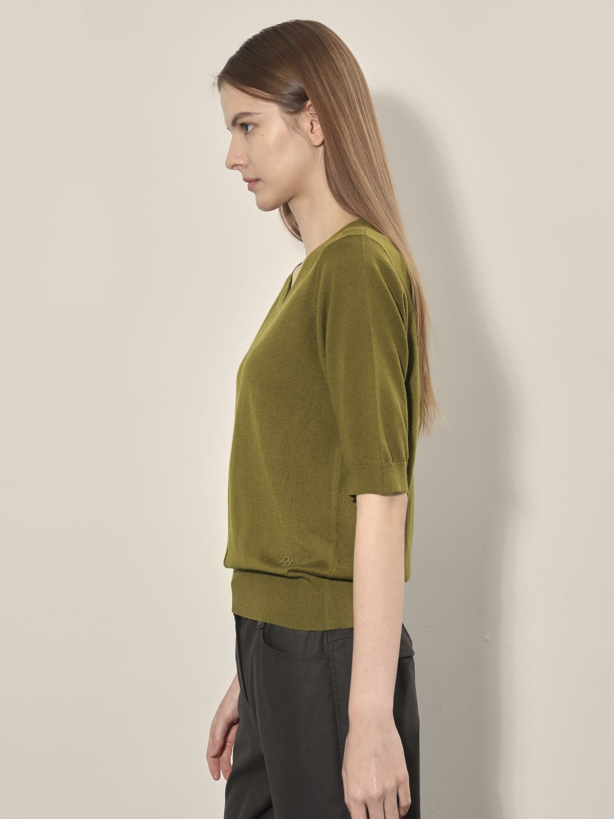 Olivia Lauren女款V領基本套頭針織T恤,採用柔軟舒適的針織布料,親膚透氣,帶來絕佳穿著體驗。經典V領設計,巧妙修飾頸部線條,展現女性優雅氣質。簡約的套頭款式,方便穿脫,輕鬆打造時尚造型。橄欖色系,百搭實用,無論搭配裙裝或褲裝,都能展現您的個人魅力。適合春、秋季節穿著,是您衣櫥中不可或缺的時尚單品。