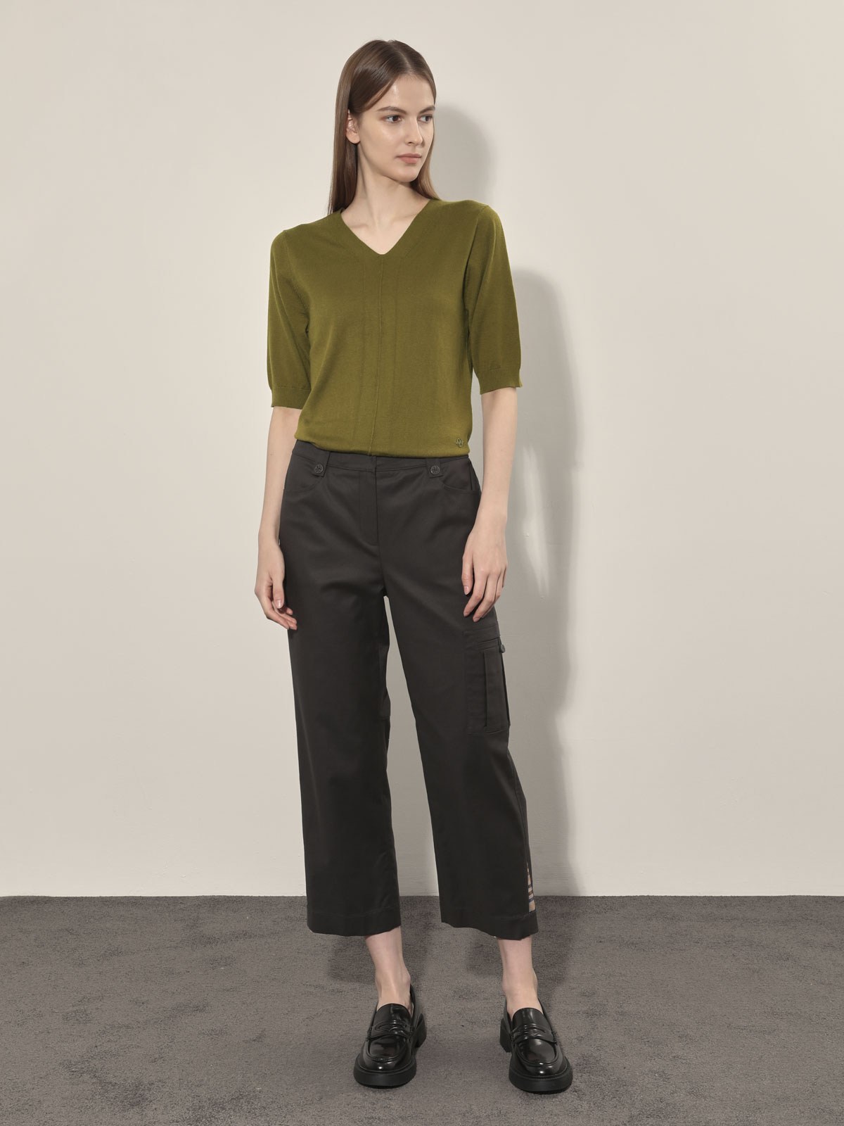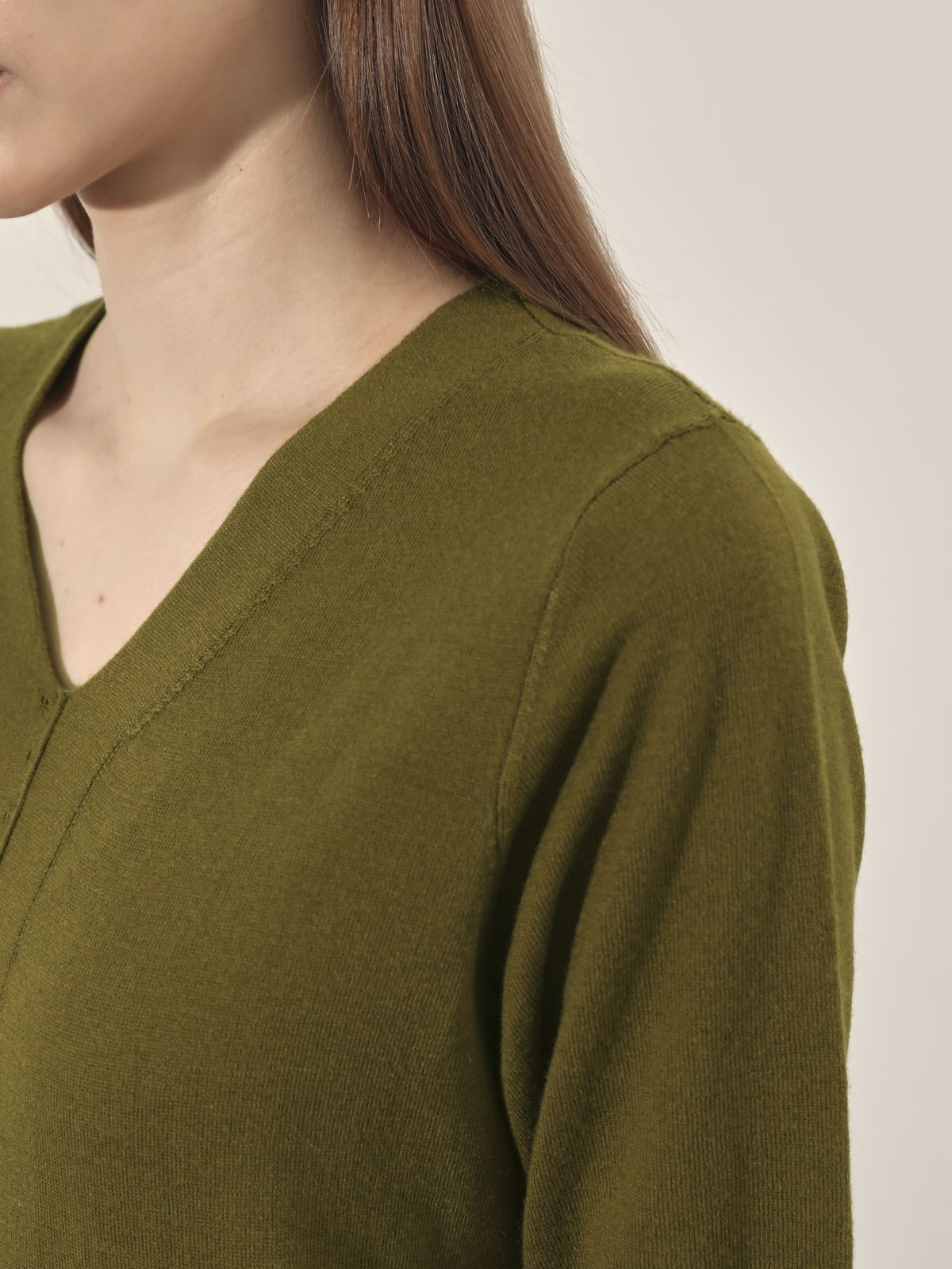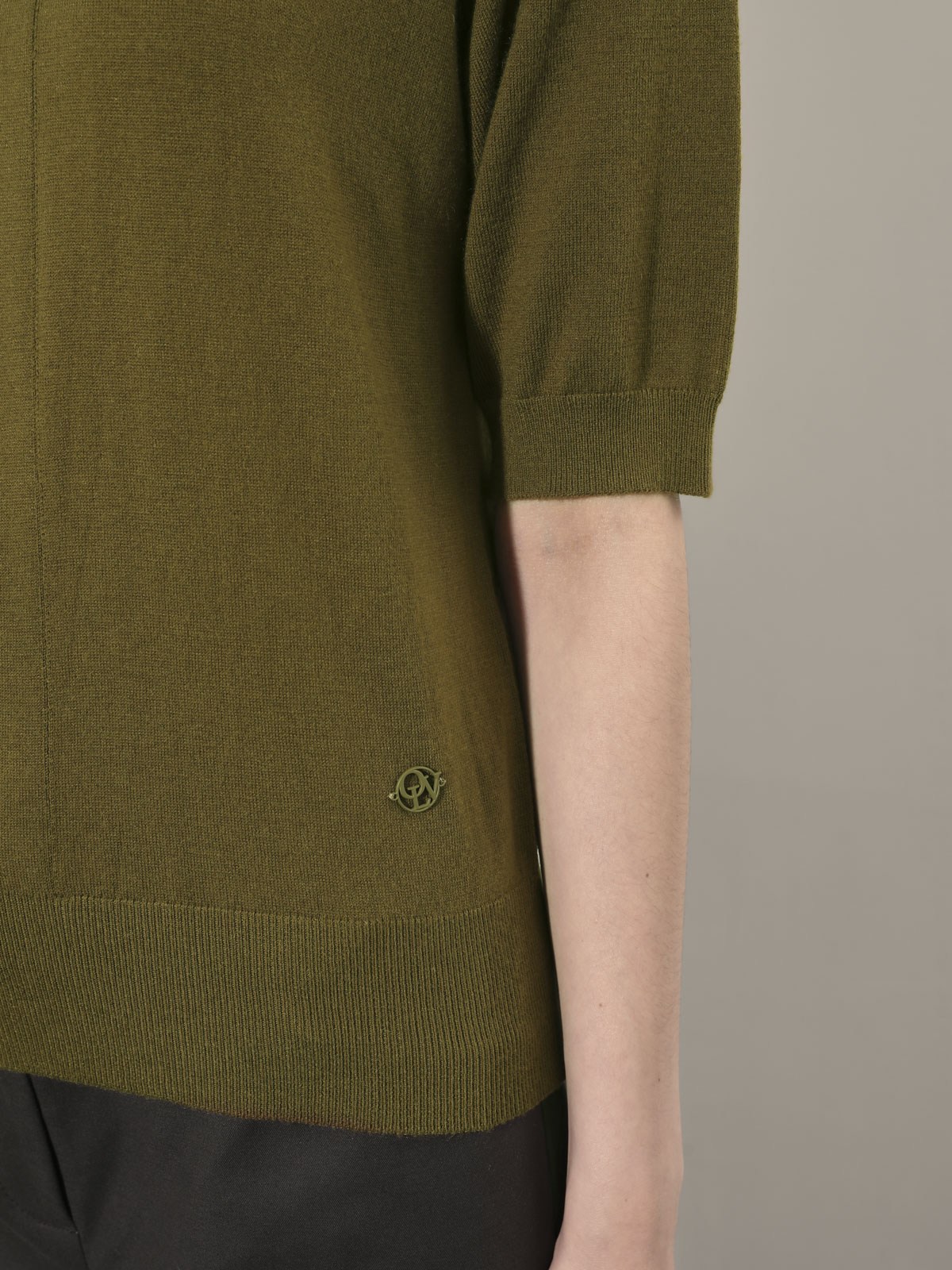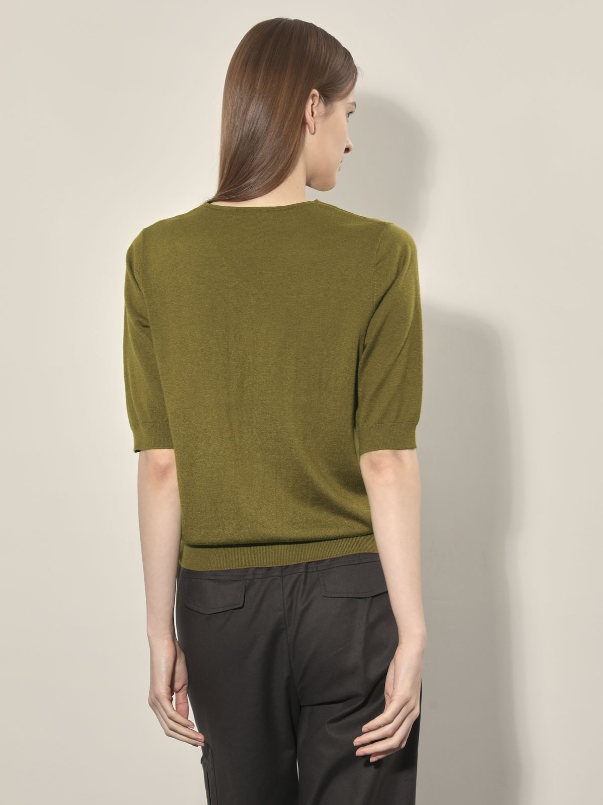 Olivia Lauren女款V領基本套頭針織T恤,採用柔軟舒適的針織布料,親膚透氣,帶來絕佳穿著體驗。經典V領設計,巧妙修飾頸部線條,展現女性優雅氣質。簡約的套頭款式,方便穿脫,輕鬆打造時尚造型。橄欖色系,百搭實用,無論搭配裙裝或褲裝,都能展現您的個人魅力。適合春、秋季節穿著,是您衣櫥中不可或缺的時尚單品。