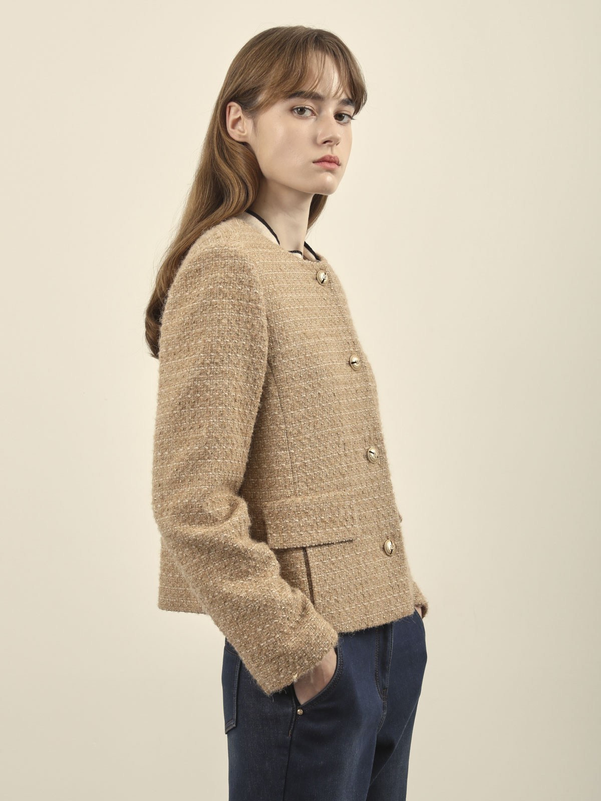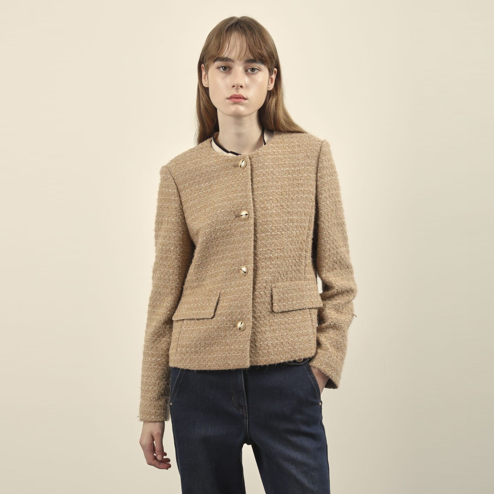 Olivia Lauren女款圓形花式夾克,以現代都市風格為靈感,採用淺褐色花呢布料,展現高雅的女性魅力。這款夾克設計簡約時尚,圓形花式細節增添了獨特感,適合日常休閒穿搭。聚酯纖維材質輕盈舒適,提供良好的穿著體驗。無論是搭配裙裝或褲裝,都能輕鬆展現您的時尚品味。適合春季和秋季穿著,為您的衣櫥增添一份特別的單品。