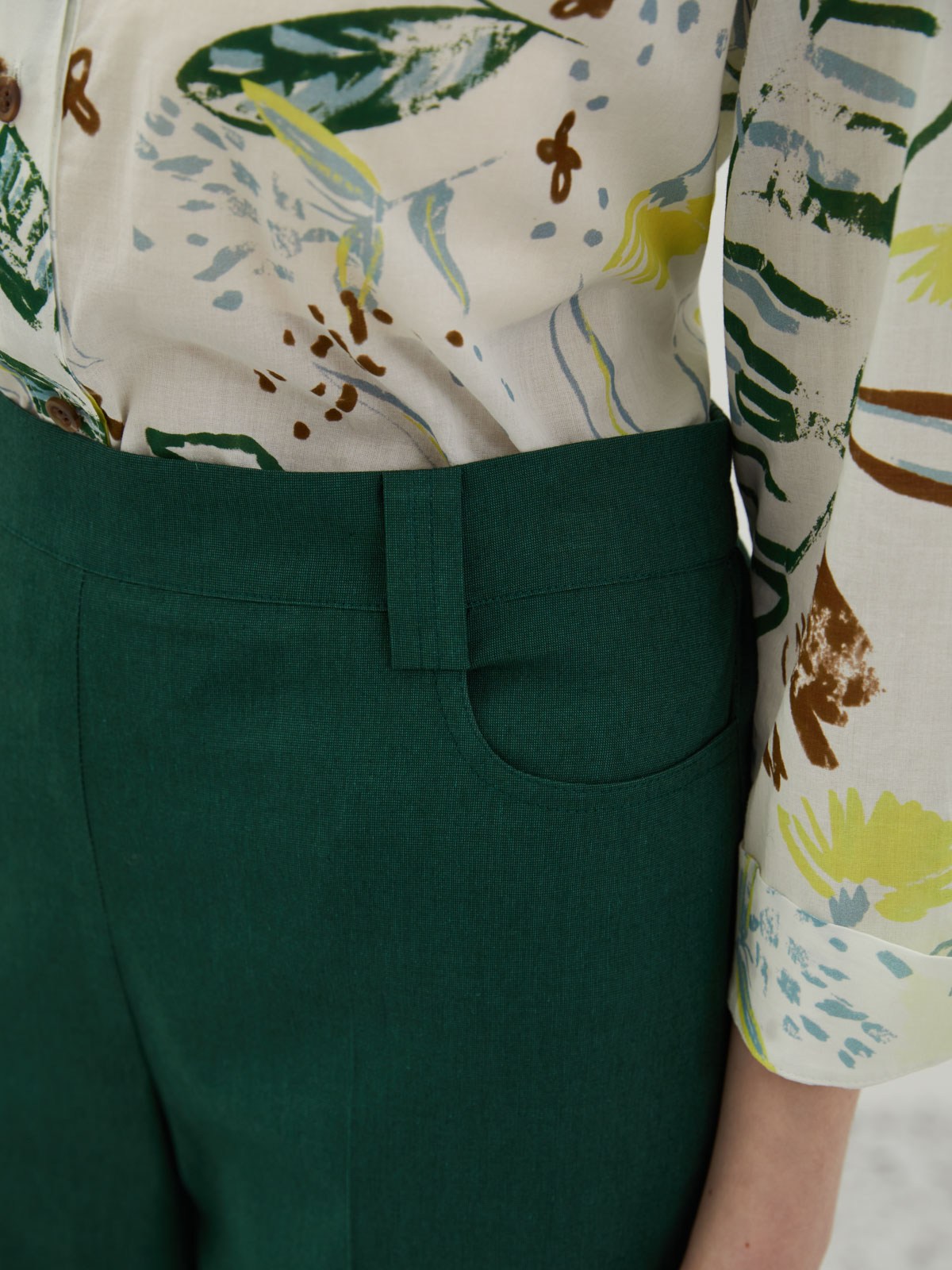 - 綠色色調清新自然,輕鬆搭配各種上衣,展現時尚品味。