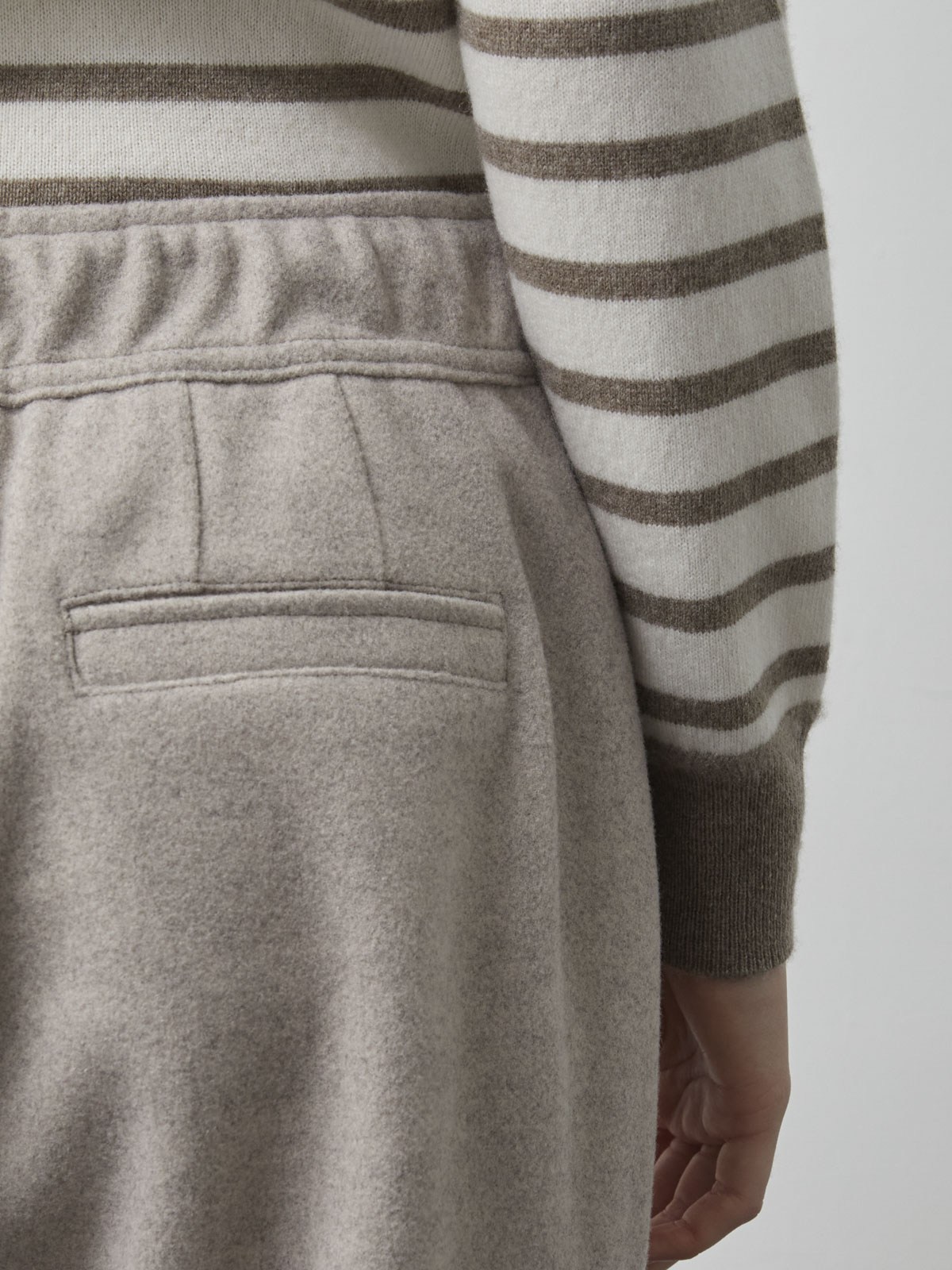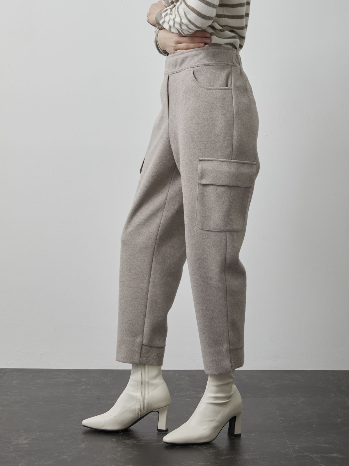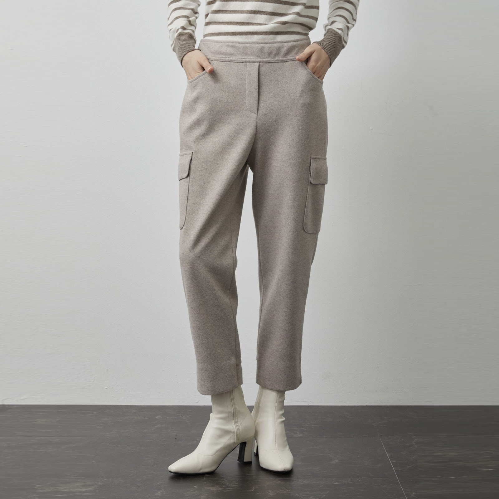 - 羊毛材質提供舒適穿著感,束帶設計可自由調整腰圍,展現個人風格。