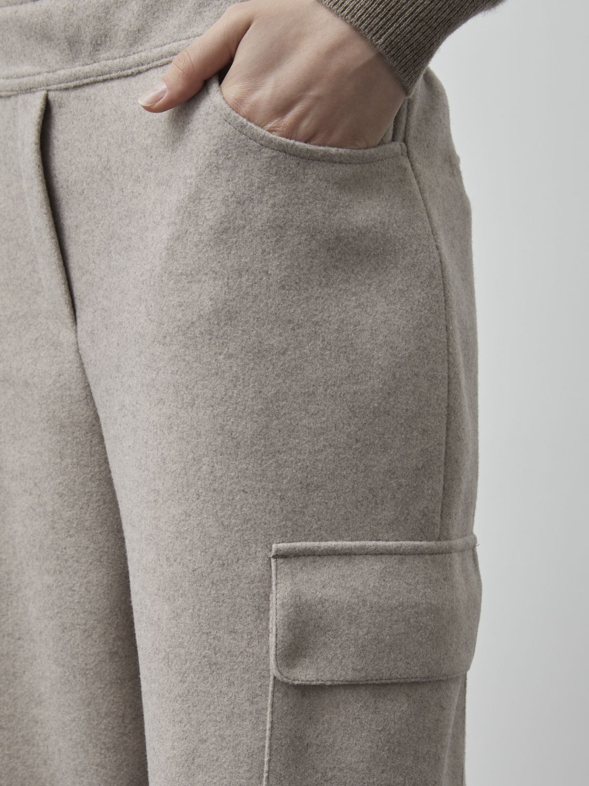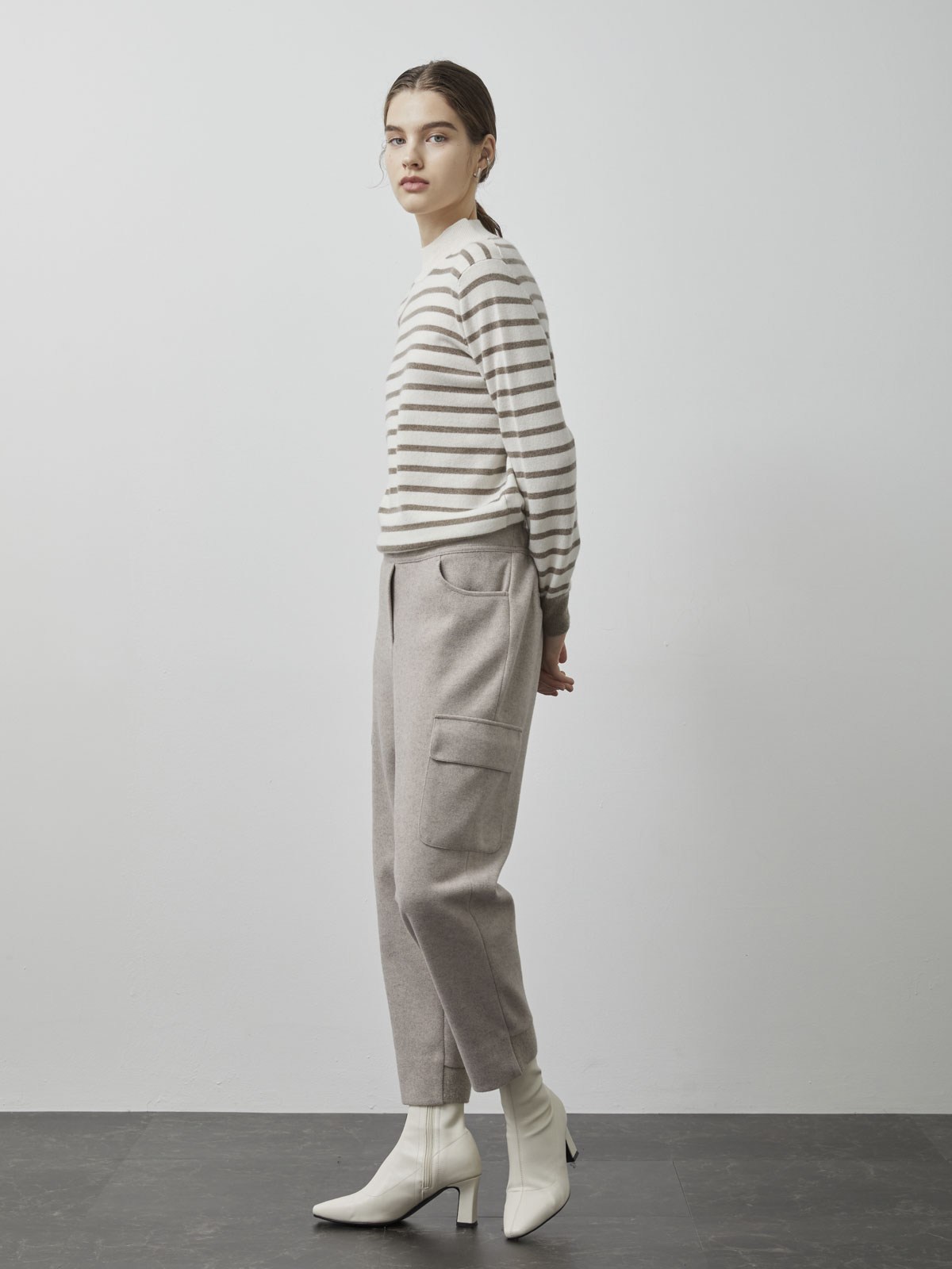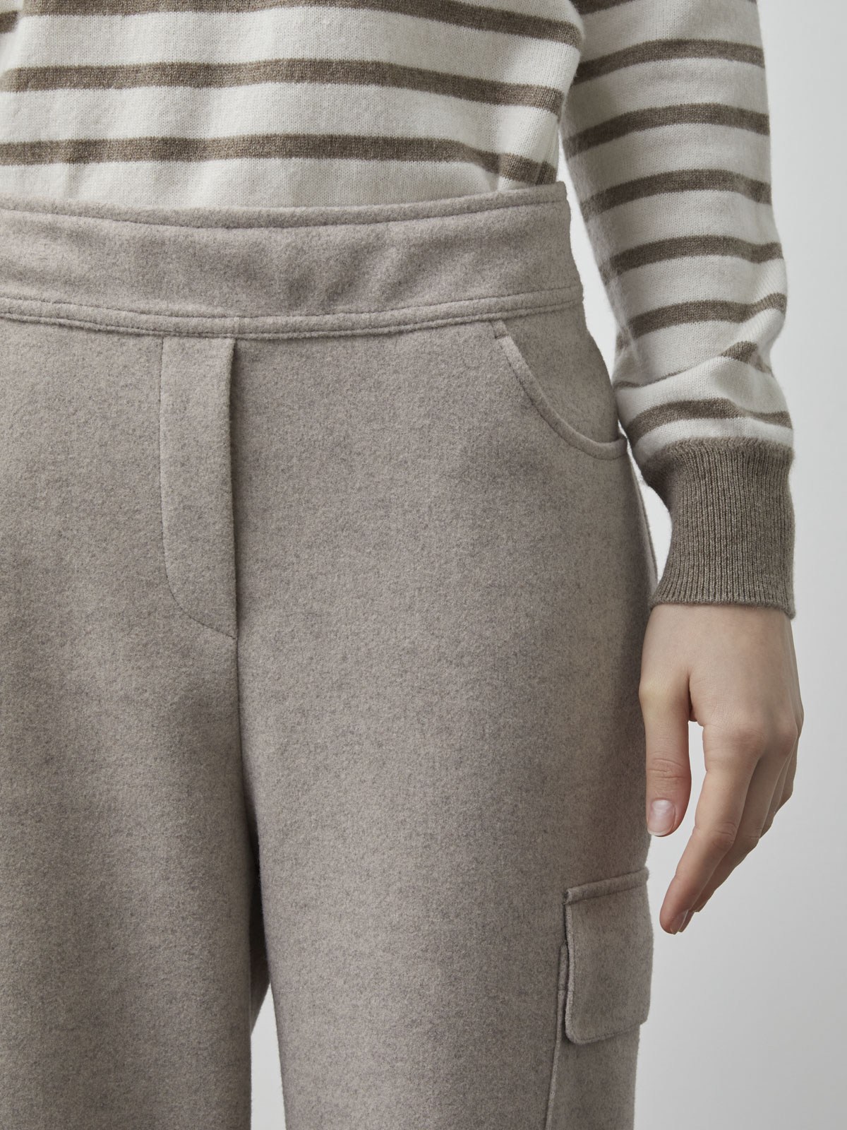 - 羊毛材質提供舒適穿著感,束帶設計可自由調整腰圍,展現個人風格。