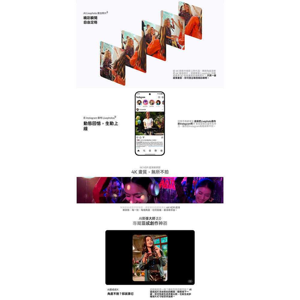 - 搭載AI閃光影像技術,即使在昏暗環境下,也能捕捉清晰生動的瞬間,完美照亮您的每個重要時刻。