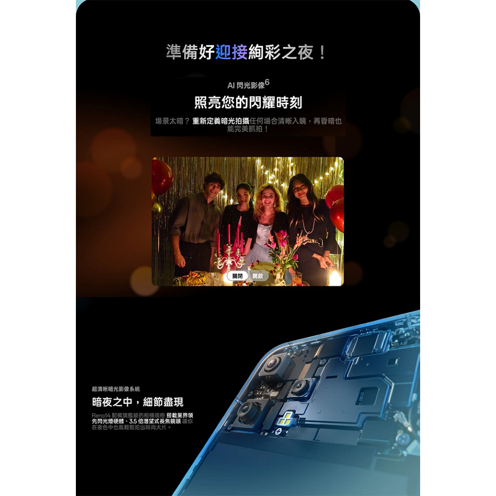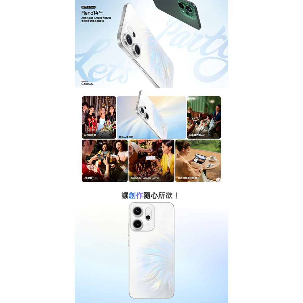 OPPO Reno14 5G智慧手機,以其獨特的絢彩人魚設計和輕薄機身,成為眾人矚目的焦點。搭載AI閃光影像和AI影像大師2.0,即使在低光源環境下也能拍出清晰、生動的照片。3.5倍潛望式長焦鏡頭讓您輕鬆捕捉遠處的細節,不錯過任何精彩瞬間。120Hz高色域煥彩大螢幕,無論追劇或遊戲,都能享受流暢細膩的視覺體驗。配備MediaTek Dimensity 8350處理器和12GB RAM,提供卓越的性能和流暢的操作體驗。