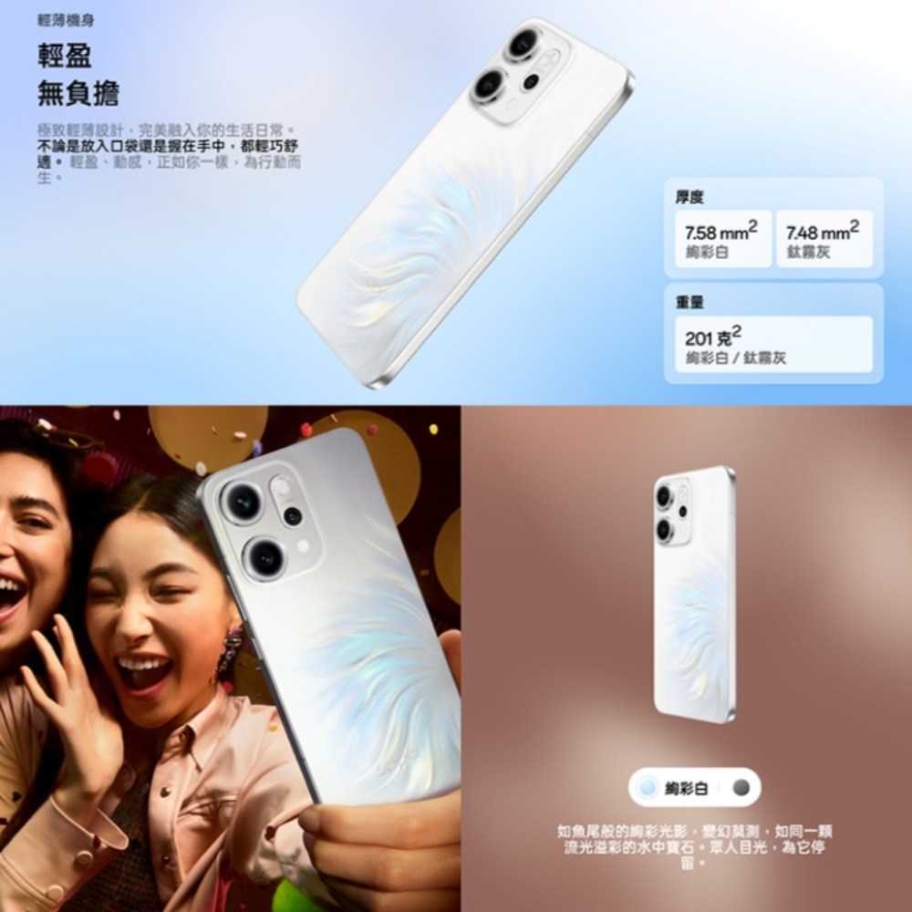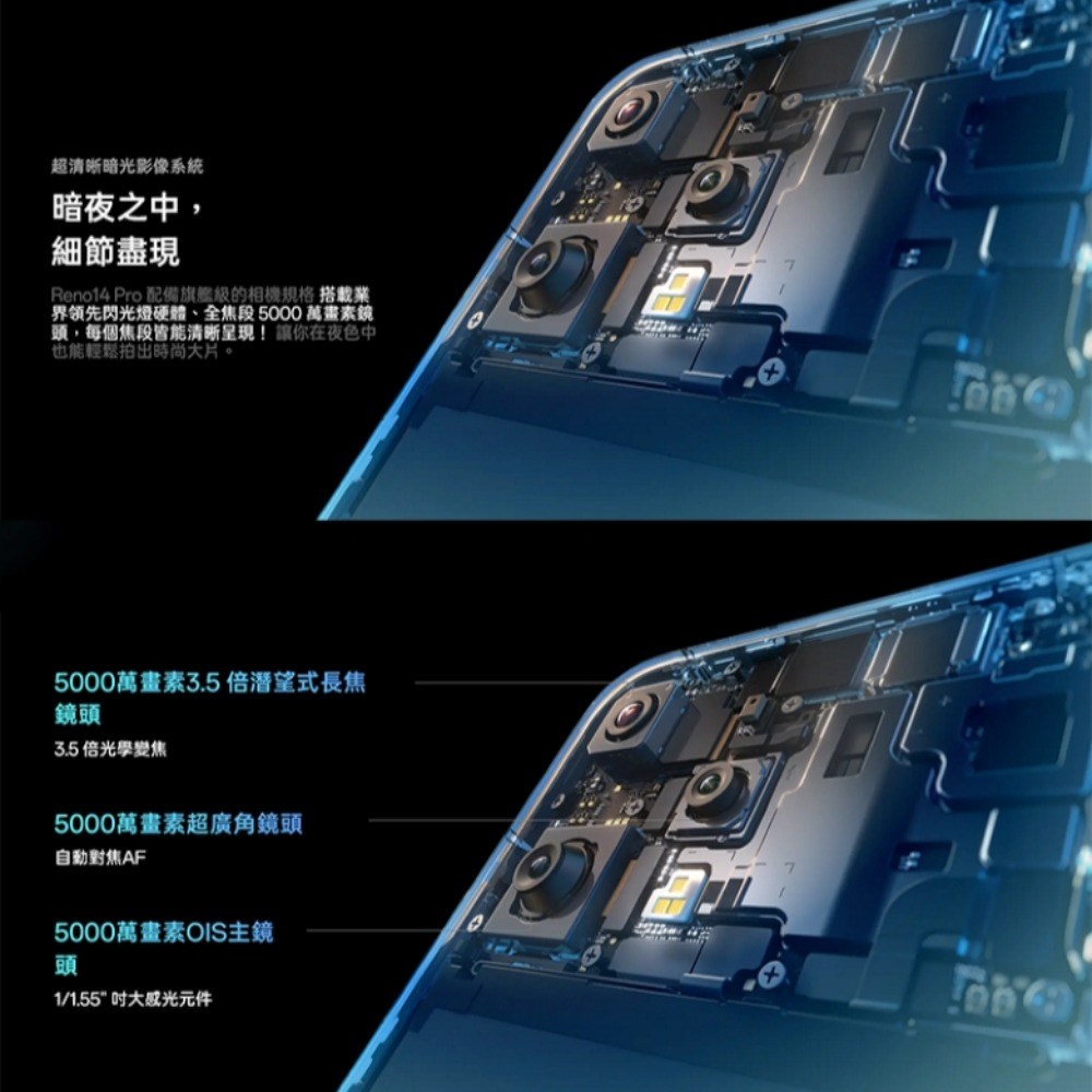 OPPO Reno14 Pro 智慧手機擁有6.83吋極窄邊框大螢幕,提供無界視野,120Hz螢幕更新率讓視覺體驗更流暢。搭載AI閃光影像技術,即使在暗光環境下也能拍出清晰照片,隨時捕捉精彩瞬間。輕薄機身設計,握感舒適,方便攜帶。配備MediaTek Dimensity 8350處理器和12GB記憶體,運行速度快,操作流暢。絢彩白配色時尚吸睛,讓你成為眾人焦點。