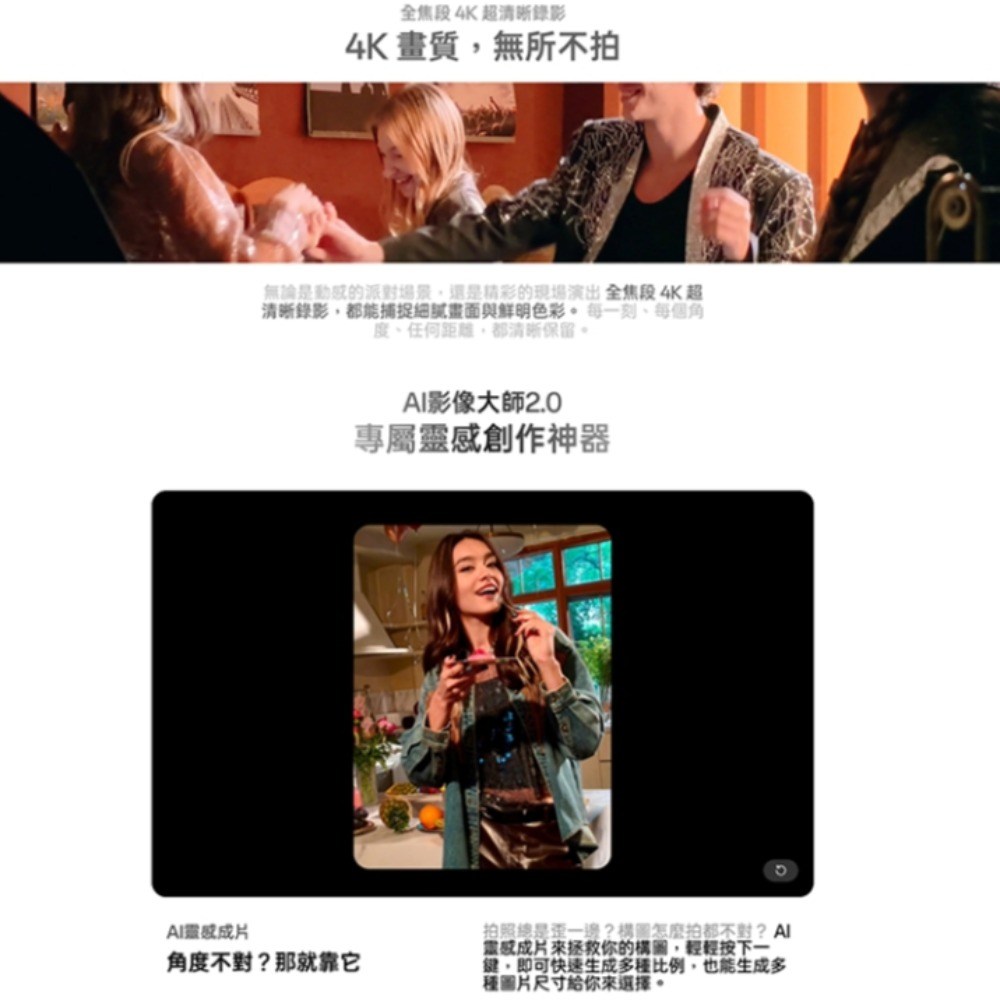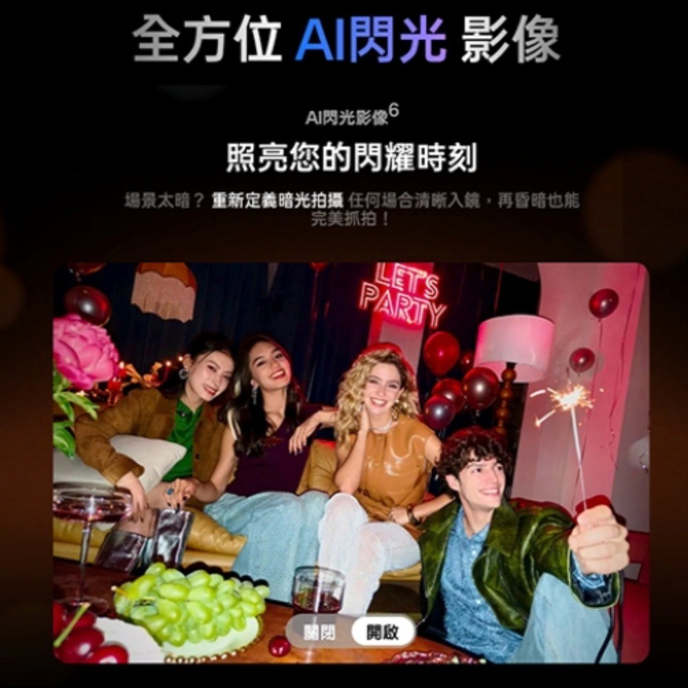 - AI閃光影像技術,即使在昏暗環境下也能清晰捕捉每個閃耀瞬間,派對、夜景拍攝都出色。