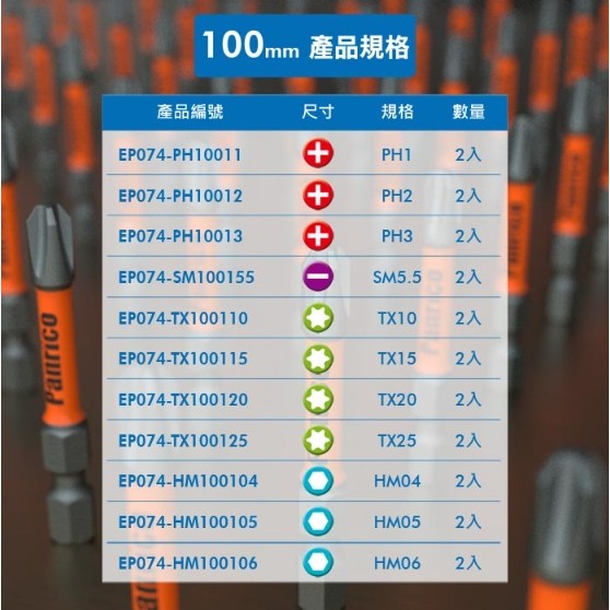 - 100mm長度設計,適用於多種工作環境,深入狹窄空間也能輕鬆操作。