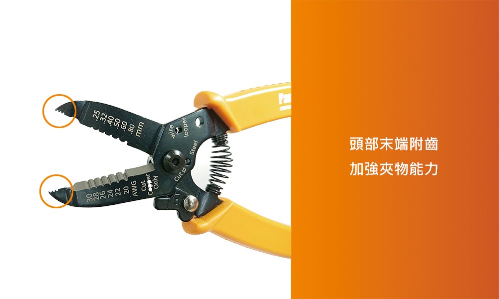 - 內置彈簧設計,操作省力便捷,單手即可輕鬆完成剝線作業,簡單又快速。