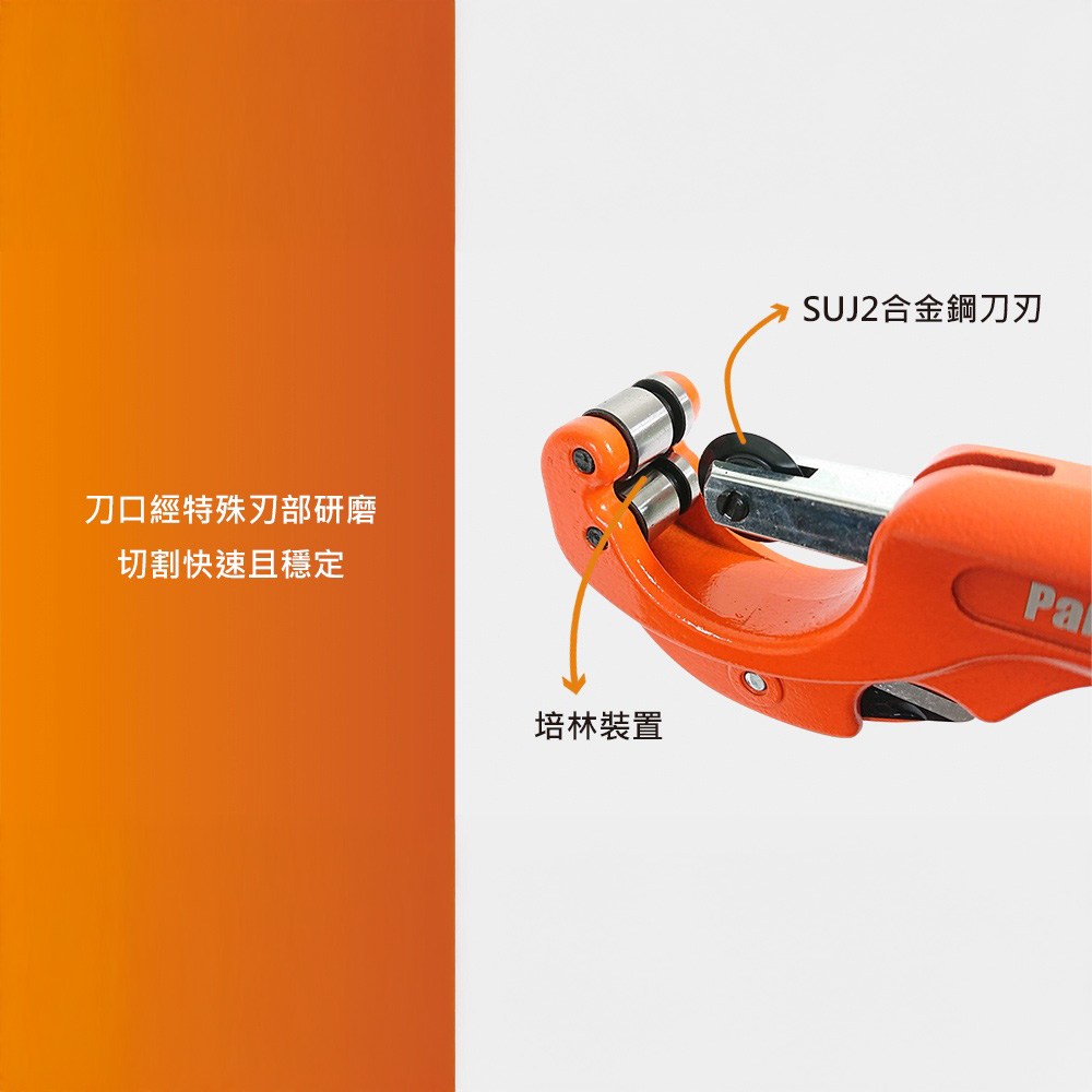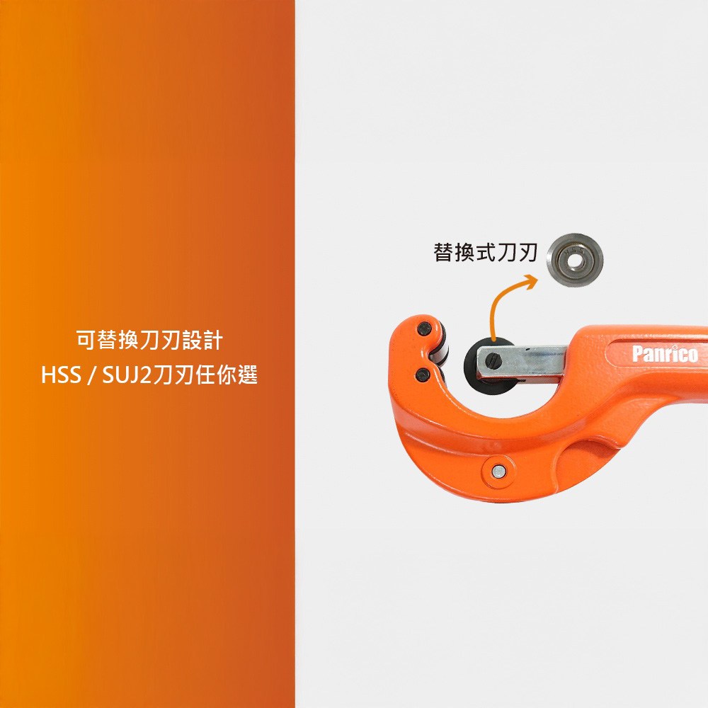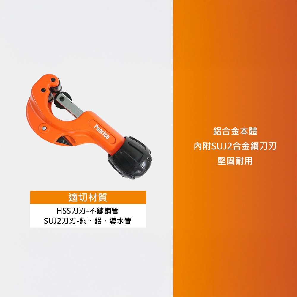 Panrico 百利世日式切管刀,是您進行水管維修或DIY項目的理想工具。這款32mm切管刀適用於切割4~32mm的銅管,附帶毛邊刮除器,讓您在切割後輕鬆去除管口毛邊,使管口更加平整光滑。刀片採用SUJ2合金鋼,堅固耐用,切割快速且穩定。此外,刀片可替換設計,您可以根據需要選擇HSS或SUJ2刀片。無論是專業水管工還是DIY愛好者,Panrico切管刀都能滿足您的需求。