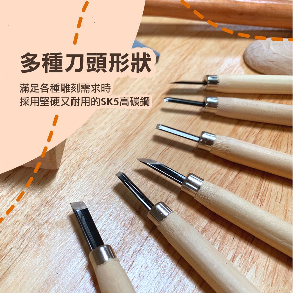 Panrico 百利世木工雕刻刀6件組,是您精雕細琢的理想選擇。這套工具包含圓口刀、斜口刀、平刀和V型刀等多種刀型,滿足您在木工雕刻中對於線條、陰影和細節的各種需求。刀刃採用日本SK5鋼材,硬度高且鋒利耐用,讓您輕鬆雕刻出精美的作品。木質手柄握感舒適,操作順手,即使長時間使用也不易疲勞。無論是花卉、木雕、根雕,還是手工藝品和DIY創作,這套雕刻刀都能助您一臂之力,讓您的作品更加精緻完美。