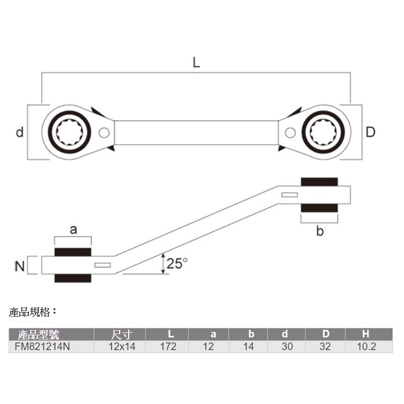 - - 14 x 12mm規格適用於多種螺絲尺寸,一把扳手滿足您的不同需求。