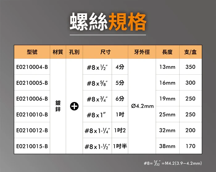 - 螺絲表面經過特殊處理,有效防鏽耐腐蝕,確保長期使用依然堅固耐用。