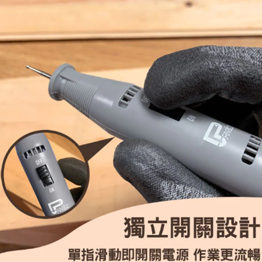 Panrico 百利世萬能雕刻機是一款插電式雕刻筆,專為金屬電刻設計,也適用於木材、陶瓷和玻璃等材質。筆型設計握感舒適,操作更流暢,讓您輕鬆進行細節打磨和雕刻。獨立開關設計,單指即可滑動開關電源,使用更方便。產品包含電動雕刻筆和雕刻刀刃,並配備110V電源變壓器,可拆卸電源線易於收納。無論是DIY手工藝品還是個性化定制,Panrico雕刻機都能滿足您的需求,為您的作品增添獨特風格。