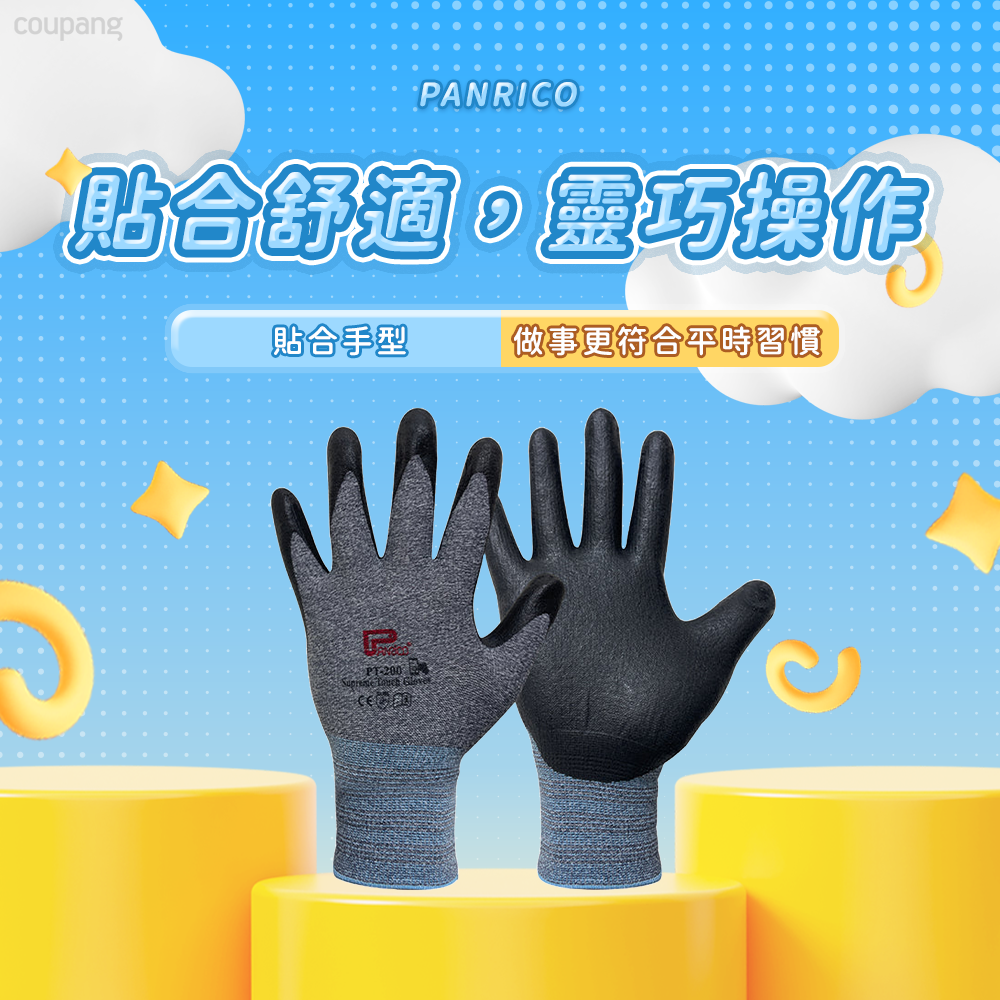 Panrico 百利世第II代觸控手套,韓國進口,為您帶來透氣舒適、止滑耐磨的全新體驗。採用尼龍、彈性纖維、聚酯纖維及碳奈米管(CNT)材質,不僅耐用且具備優異的觸控功能,讓您戴著手套也能輕鬆操作手機。無論是建築工地或洗碗等日常家務,這款手套都能提供絕佳的保護與靈活性。貼身設計,提供S尺寸選擇,黑灰配色時尚百搭。讓Panrico手套成為您工作與生活中的得力助手!