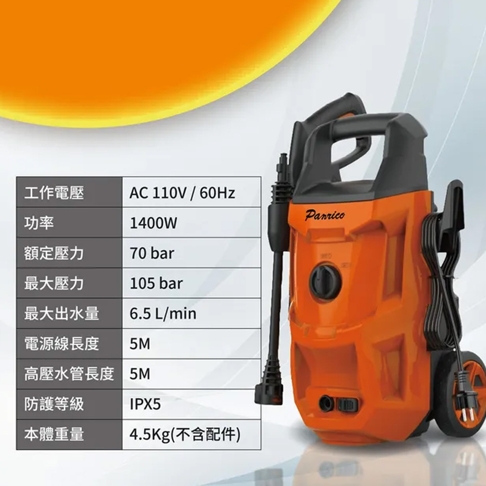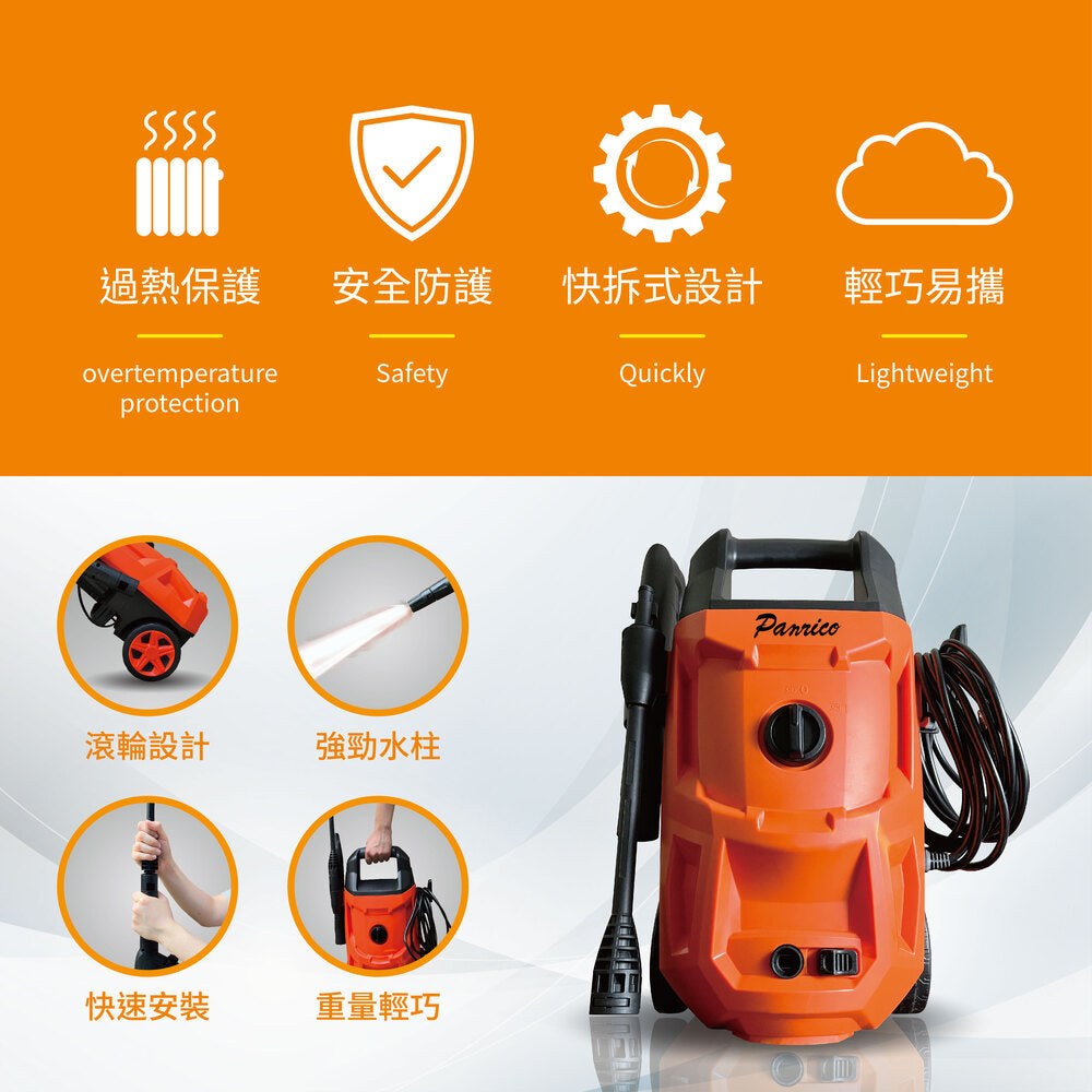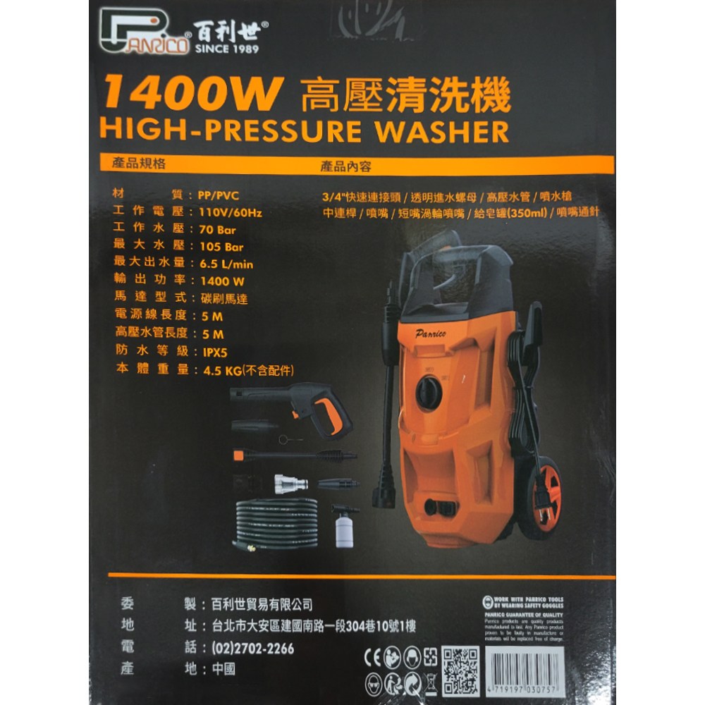 PANRICO 百利世 高壓清洗機 1400W 電源線長度5m 高壓水管長度5m 輕巧設計, 1盒