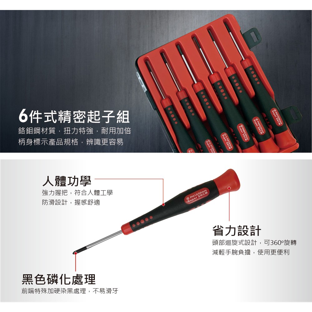 - - 舒適握柄設計,讓您長時間使用也不易疲勞,輕鬆完成各種精密維修工作。