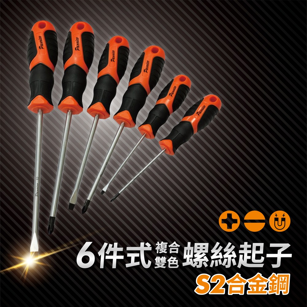 PANRICO 百利世 6件式複合雙色螺絲起子組,是您居家修繕、DIY創作的最佳幫手。採用S2合金鋼材質,經過特殊熱處理,堅固耐用,確保長期使用不變形。起子頭帶有磁性,讓您在施工時輕鬆吸附螺絲,避免掉落,提高工作效率。PP+TPR雙色複合手柄,防滑設計符合人體工學,握感舒適,長時間使用也不易疲勞。無論是十字或一字螺絲,這組螺絲起子都能輕鬆應對,適用於各種鎖固與拆卸需求。