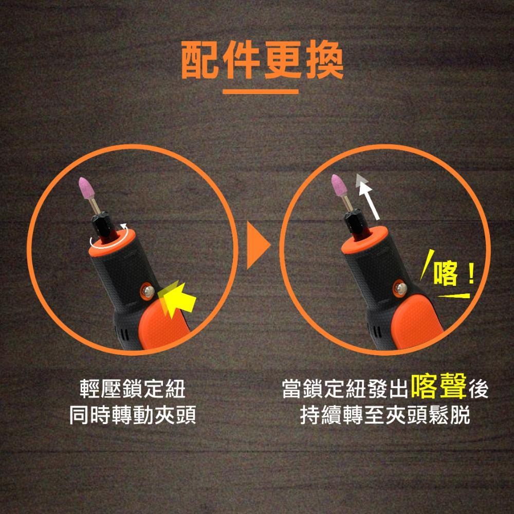 - 輕巧機身僅250g,長時間使用也不易疲勞,輕鬆完成精細刻磨工作。