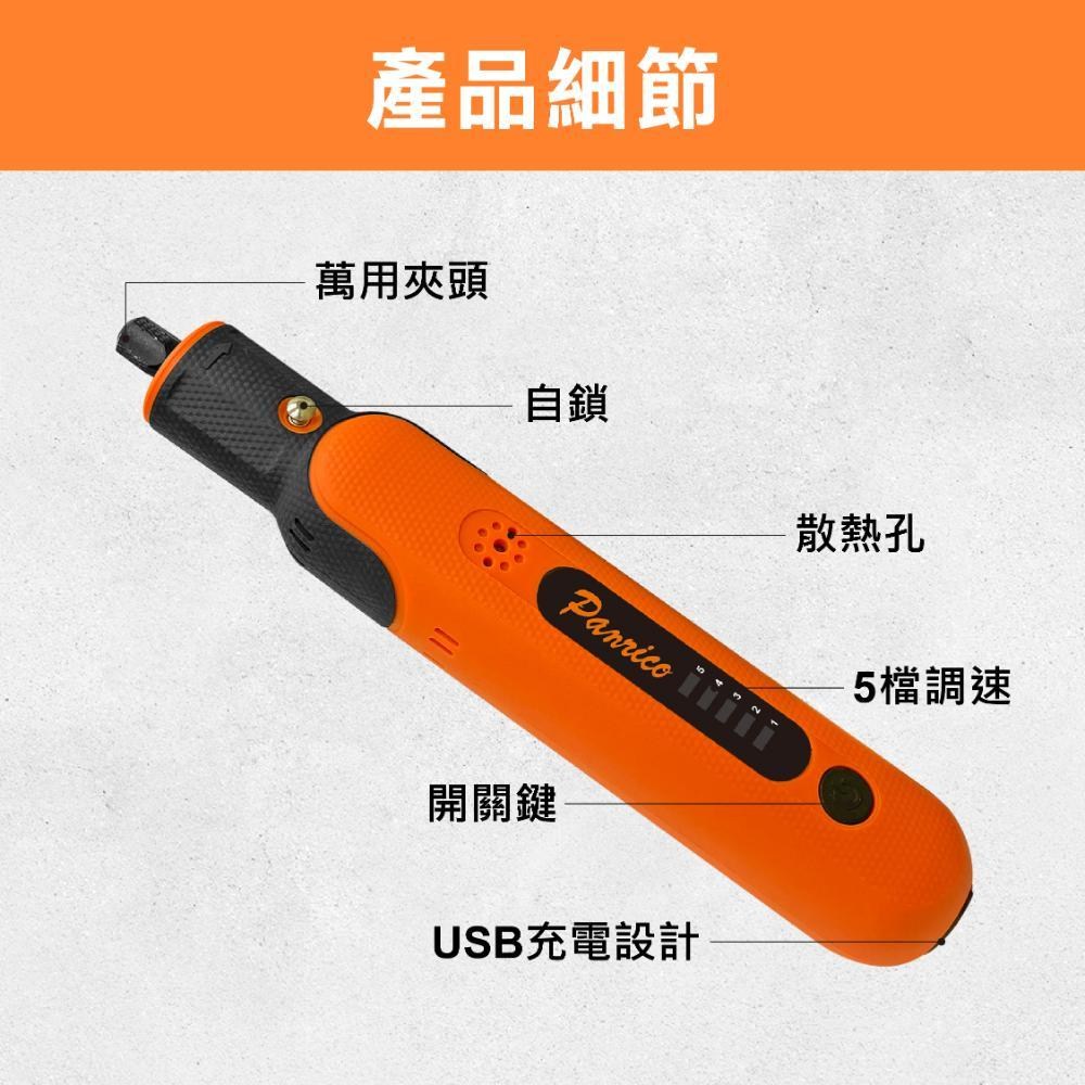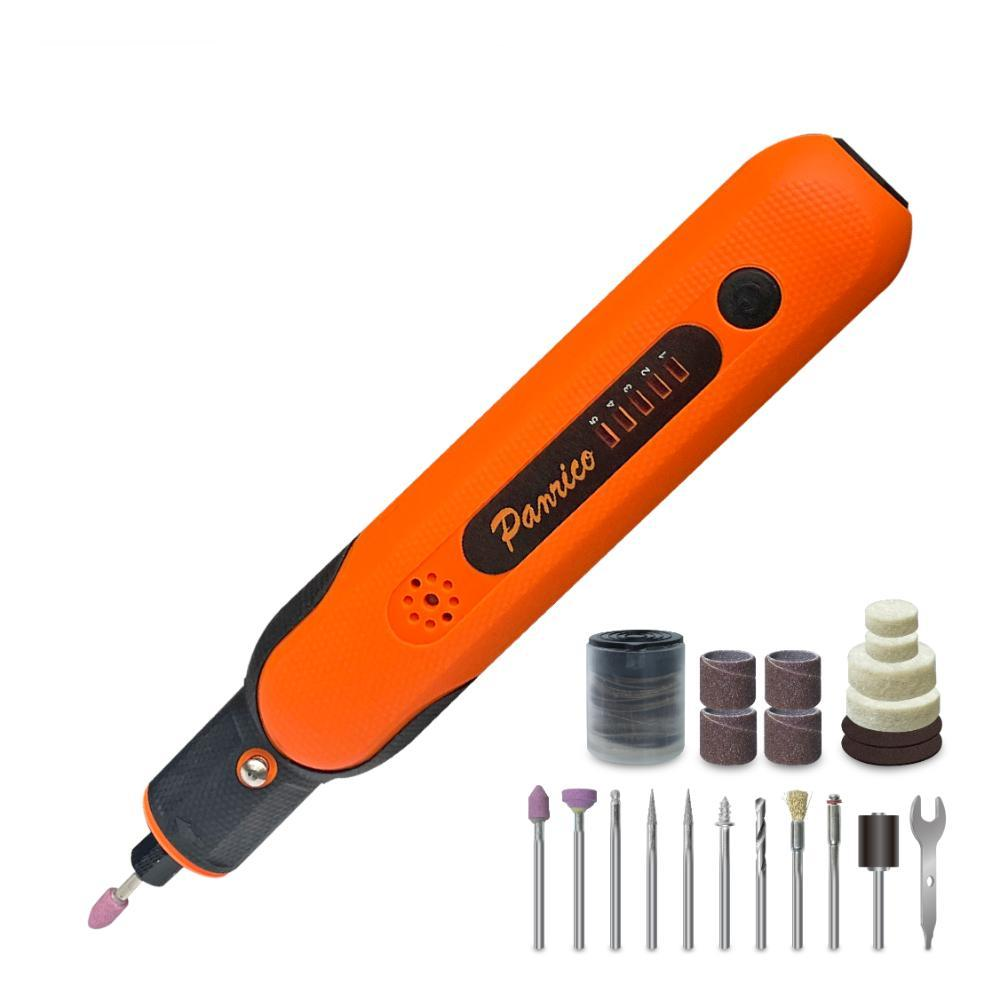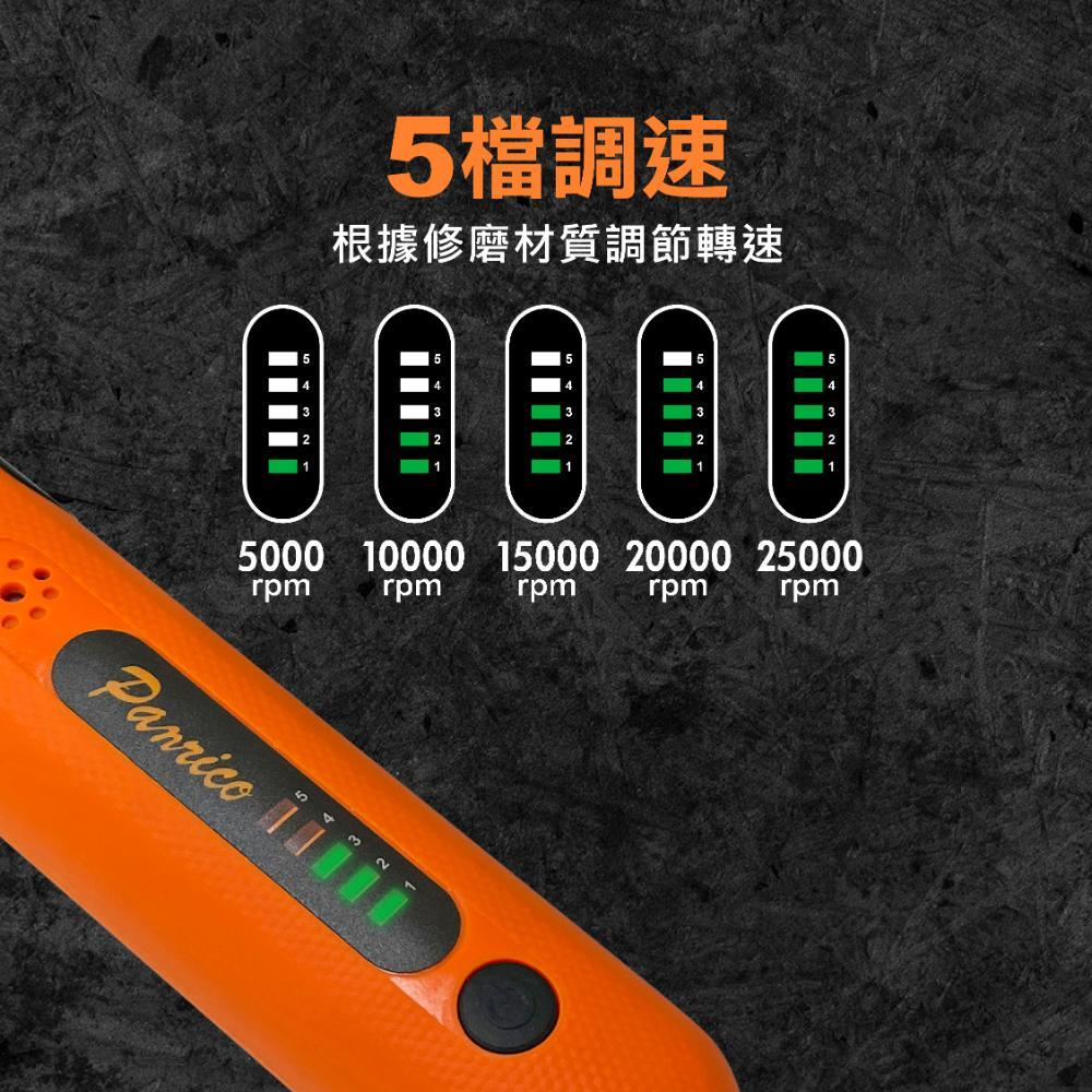 Panrico 百利世 8V迷你無線鋰電刻磨機,是您進行精細雕刻、打磨和DIY項目的理想選擇。這款輕巧的工具重量僅250克,尺寸為210 x 38mm,方便攜帶和操作。它配備了5檔調速功能,轉速範圍從5,000到25,000rpm,讓您可以根據不同的材料和需求調整速度。此外,它還具有USB充電設計,充電70分鐘即可使用60分鐘,讓您的工作流程暢通無阻。隨附46件配件,包括砂紙片、研磨針、羊毛片等,適用於拋光、雕刻、研磨、鑽孔和切割等多種應用。
