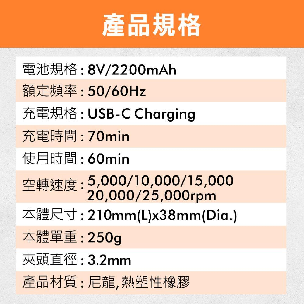 - 8V鋰電池提供穩定動力,確保刻磨過程順暢,提升工作效率與品質。