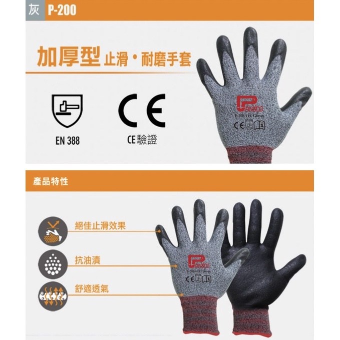 - 手套表面特殊止滑設計,即使在潮濕環境下,也能穩固抓握工具