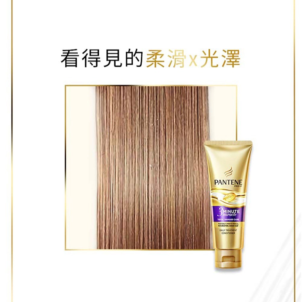 潘婷3分鐘奇蹟多效護髮精華,是您快速修護受損髮質的理想選擇。這款來自台灣公司貨的護髮精華,蘊含豐富的Pro-V維他命原B5,能深入髮芯,有效修護因吹風、拉扯、染燙造成的毛躁、乾枯、分叉、易斷等問題。只需短短3分鐘,即可為秀髮注入營養,撫平毛鱗片,讓秀髮重現柔順光澤。每天使用,能強韌髮絲,持久修護,讓您告別毛躁,展現健康亮麗的秀髮。每條70ml的容量,方便攜帶,隨時隨地呵護您的秀髮。