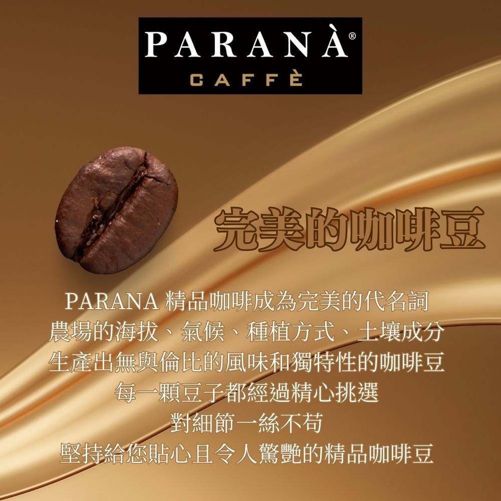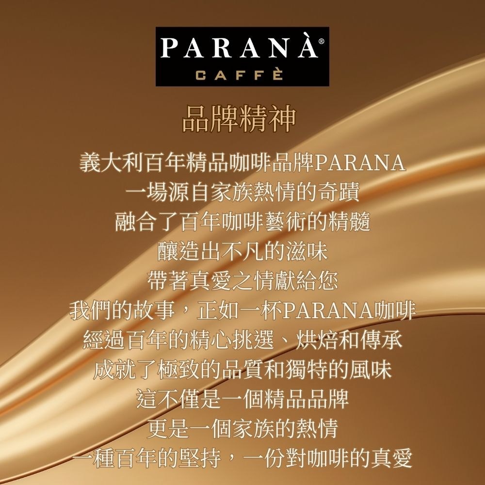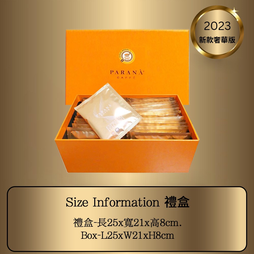 PARANA 義大利金牌咖啡濾掛包禮盒,將義大利的咖啡文化帶入您的生活。這款禮盒包含30包10克的金牌獎濃縮咖啡濾掛包,讓您隨時隨地都能輕鬆享受一杯高品質的義式濃縮咖啡。採用精緻的濾掛式設計,無需專業器具,只需熱水即可沖泡,方便快捷。精緻的禮盒包裝,無論是自用還是送禮,都能展現您的品味與心意。讓PARANA咖啡為您帶來濃郁香醇的咖啡體驗,感受義大利的熱情與精緻。