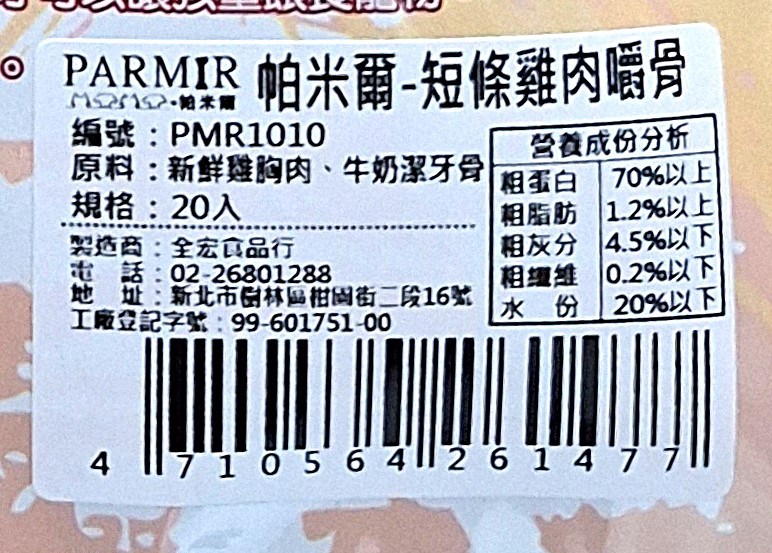 - 飼料/零食主原料: 雞肉