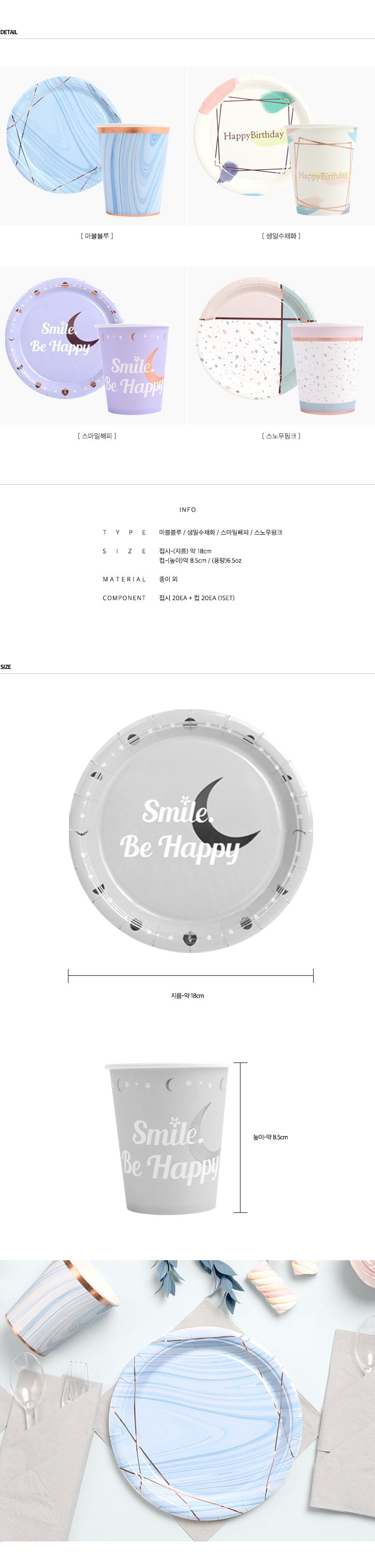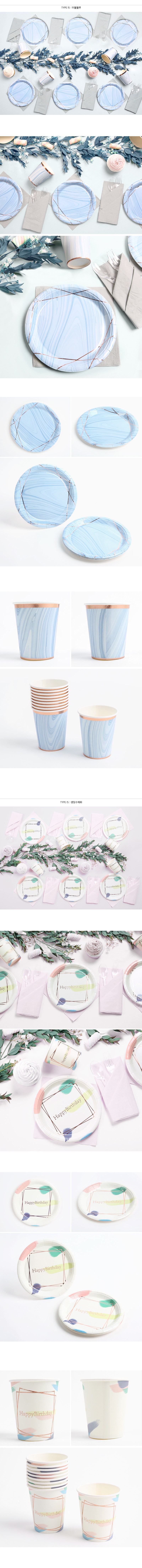 PARTYHAE 文青風派對盤 18cm 20入 + 派對杯 20入 套組 生日水彩, 1套