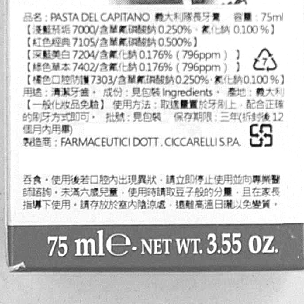 - 義大利隊長經典紅色牙膏,帶來清新潔淨的口腔體驗,讓您每天都充滿自信笑容。