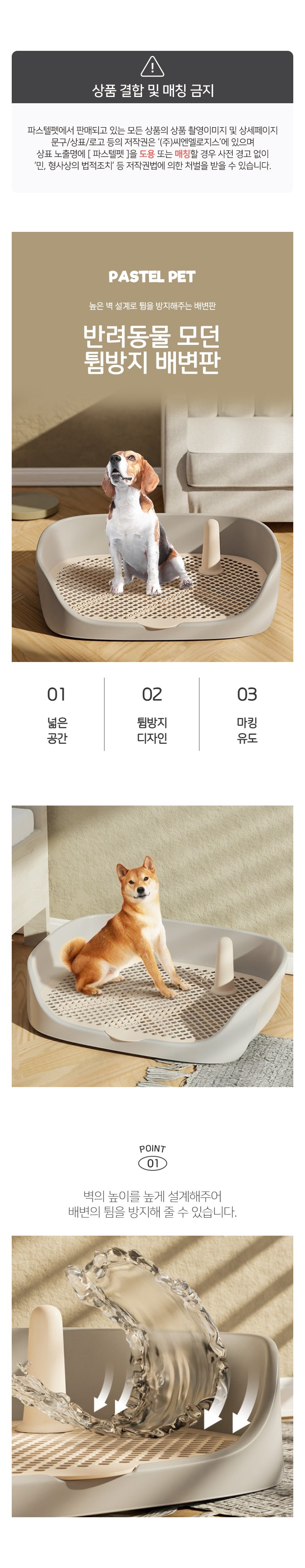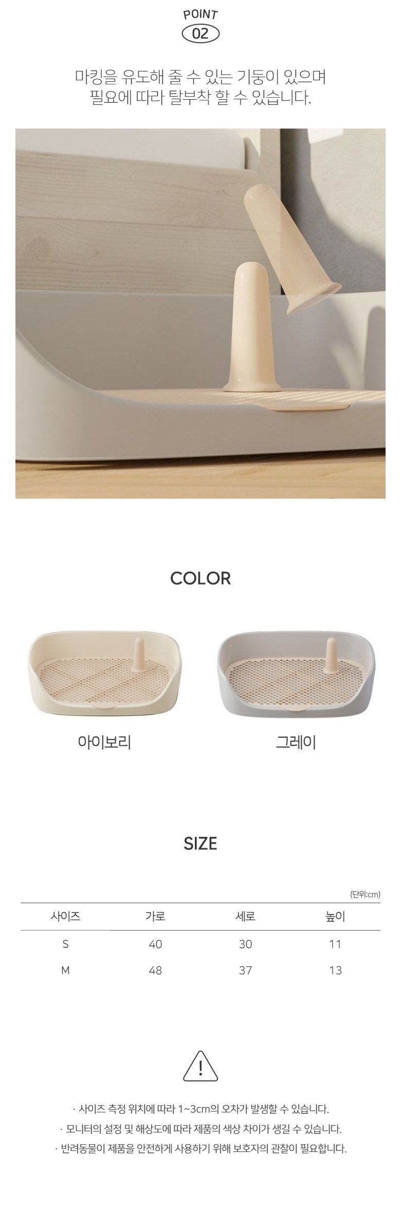 PASTEL PET寵物現代化防濺垃圾箱採用高牆設計,有效防止寵物排泄物濺出,保持居家環境清潔。寬敞的空間讓寵物能舒適地轉身,提供更自在的如廁體驗。附帶的便溺引導柱可根據需求安裝或拆卸,幫助訓練寵物定點排便。象牙白和灰色兩款可選,M尺寸適合中小型犬使用。請注意,為確保寵物安全,使用時需有飼主在旁監督。