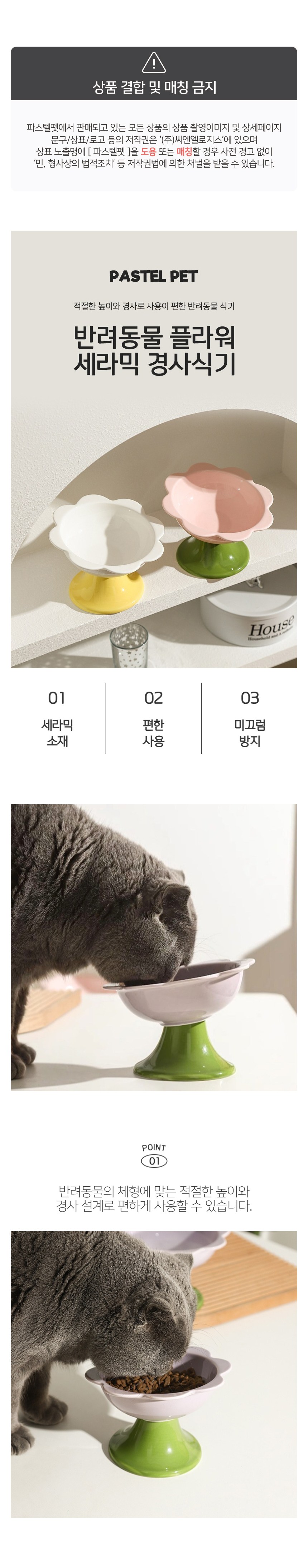 PASTEL PET 寵物花陶瓷斜式餐具,採用優質陶瓷材質製成,表面光滑易於清潔,能有效防止細菌滋生,呵護寵物健康。符合寵物體型的傾斜角度設計,讓寵物進食時頸椎更放鬆,降低進食壓力。底部防滑設計,增加餐具的穩定性,避免寵物進食時餐具滑動。粉嫩的顏色,為寵物的用餐時光增添一份可愛與溫馨。讓您的愛寵享受更舒適、健康的飲食體驗。
