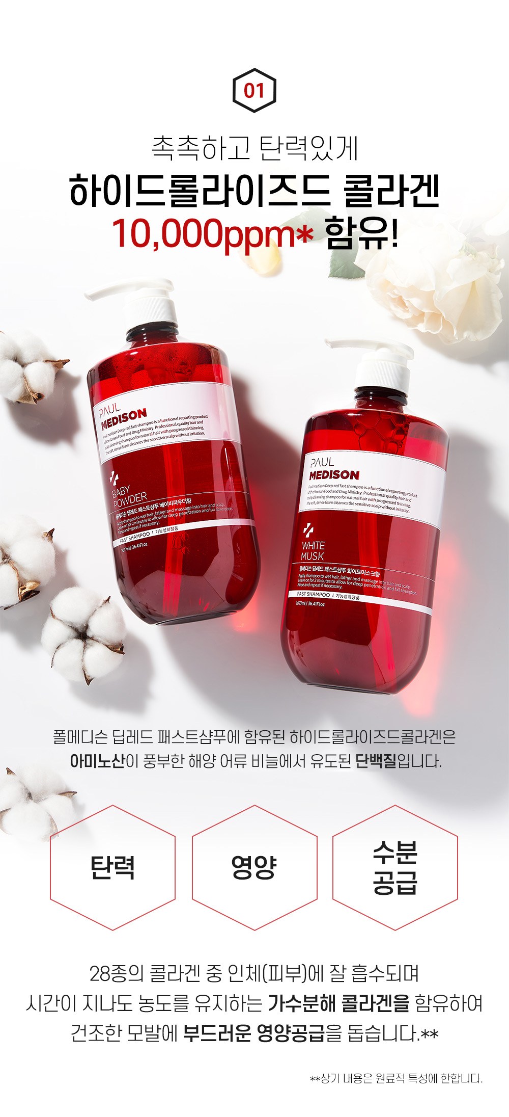 PAUL MEDISON 深紅快速健髮洗髮精,專為脆弱髮質設計,能溫和清潔頭皮,去除多餘油脂,同時補充髮絲所需的水解膠原蛋白,使頭髮恢復彈性與光澤。白麝香的優雅香氣,讓洗髮成為一種享受,洗後髮絲散發迷人香氣。此款洗髮精能改善毛躁乾澀,使秀髮柔順好梳理,展現健康光澤。大容量包裝,全家皆適用,給予髮絲最溫柔的呵護。