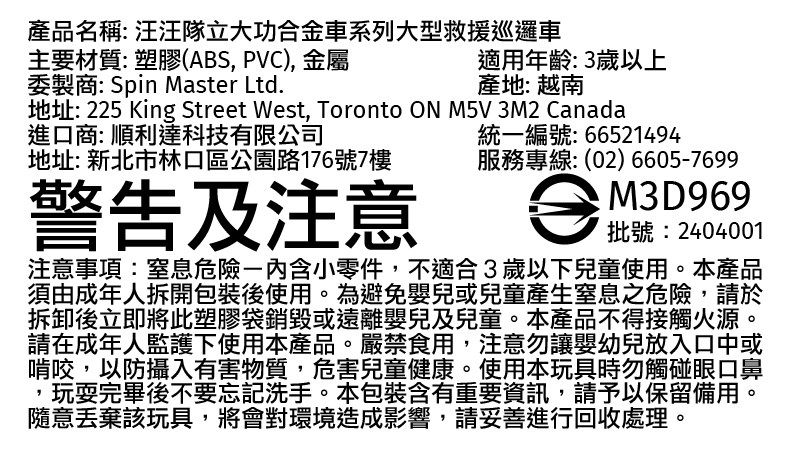 - 大型救援巡邏車設計,提供更廣闊的玩樂空間,讓孩子們可以盡情發揮。