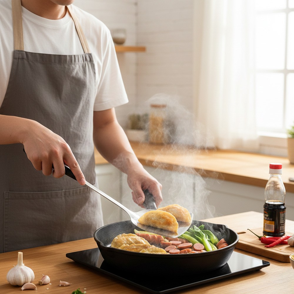 - 理想極緻煎匙,輕鬆翻炒食材,烹飪體驗更上一層樓,享受美食製作的樂趣。