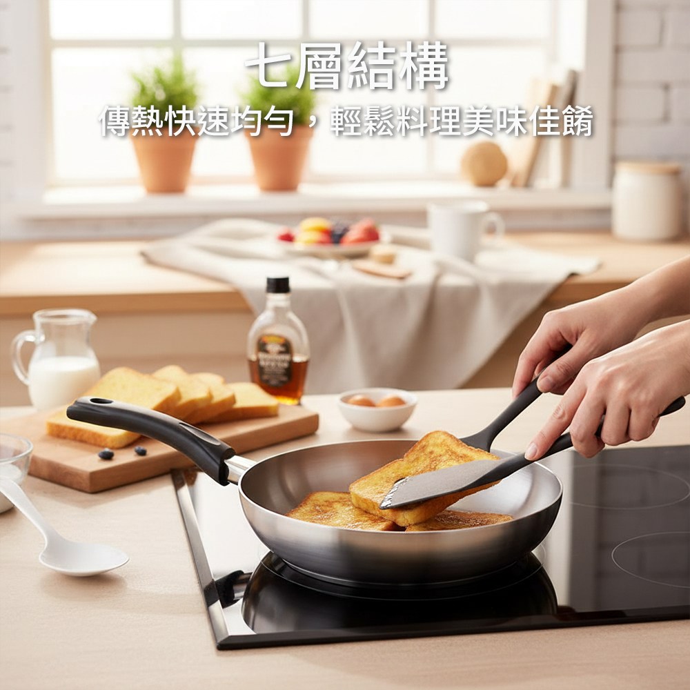 - 七層複合金結構,導熱迅速且均勻,減少烹飪時間,讓您輕鬆享受美味佳餚。