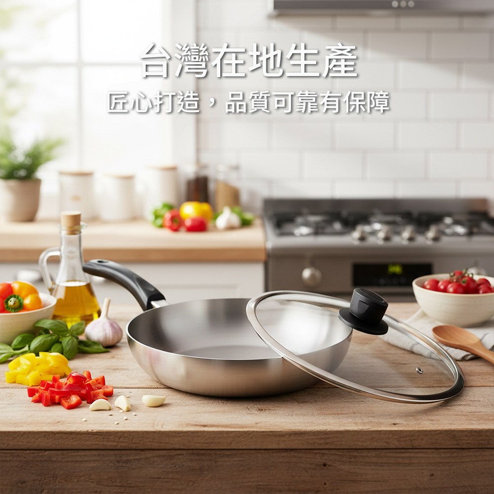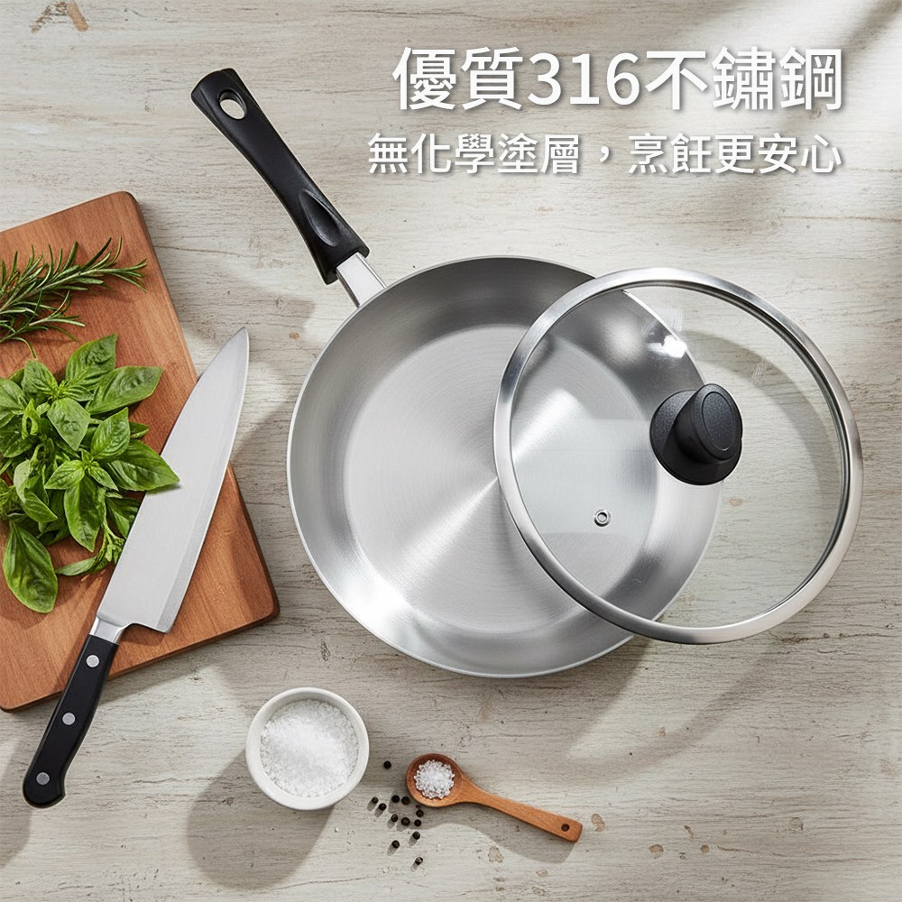 理想金緻316七層複合金平底鍋,台灣製造,品質保證。採用七層複合金結構,導熱均勻快速,讓您輕鬆烹飪出美味佳餚。鍋身使用316不鏽鋼,耐用安全,不含化學塗層,讓您安心使用。28公分直徑,適合各種爐具,包含電磁爐。附帶鍋蓋,烹飪更方便。單手柄設計,輕巧好握,讓您輕鬆翻炒。