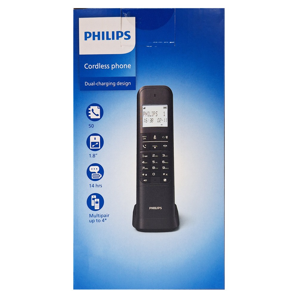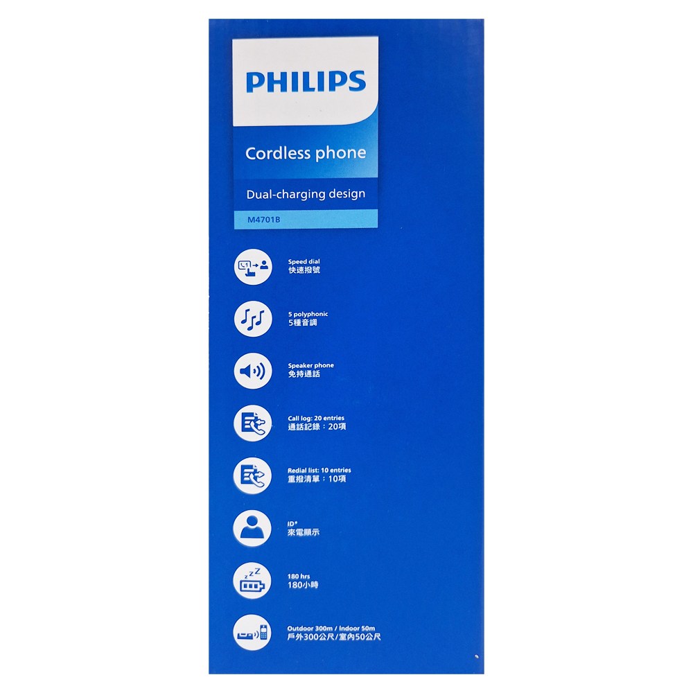 飛利浦 M4701B 無線電話,讓您在家中也能享受清晰通話。支援來電顯示功能,不錯過任何重要來電。簡約黑色外型,搭配充電式 AAA 電池及有線基座供電。大螢幕顯示,資訊一目瞭然,最多可儲存 50 組聯絡人,方便快速撥號。無論是長輩或年輕家庭,都能輕鬆上手,享受無線通話的便利。