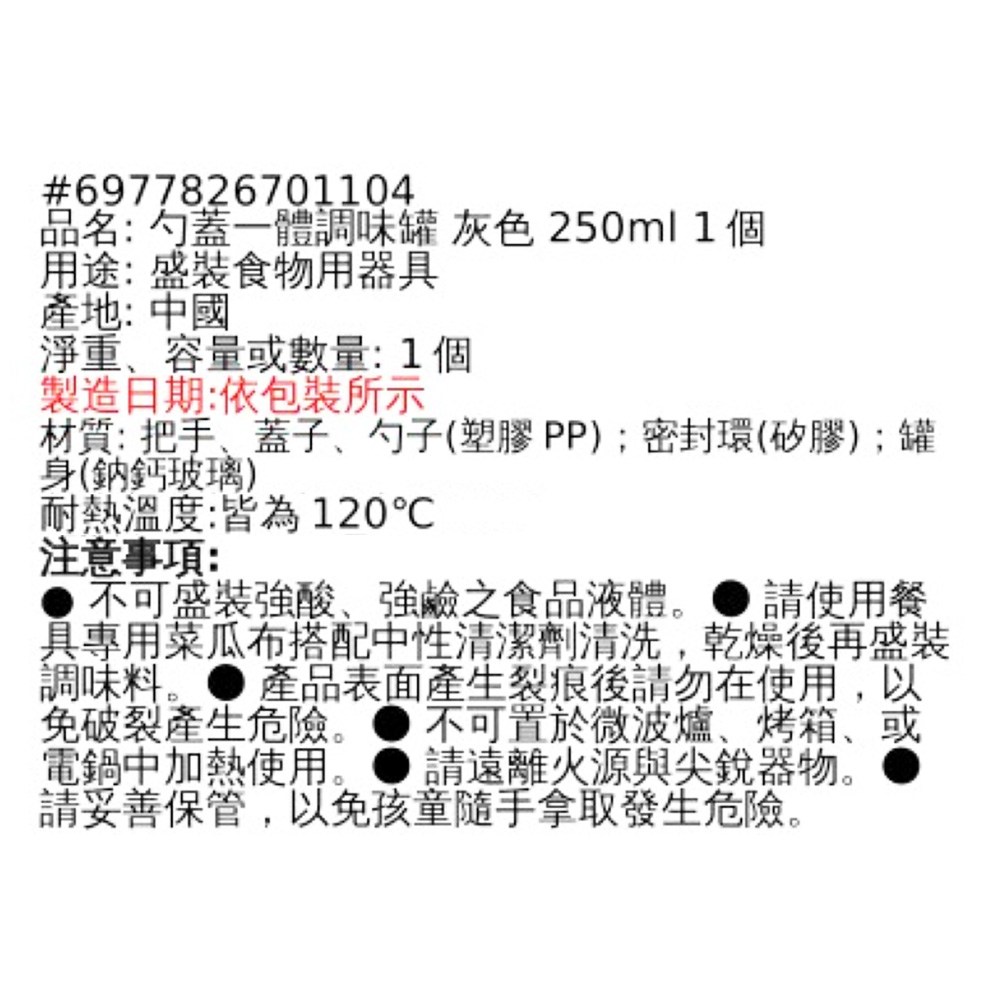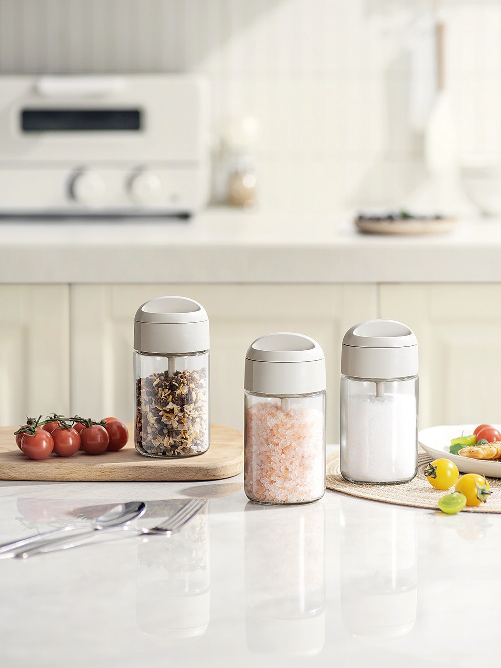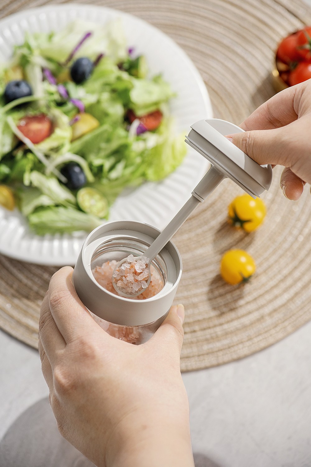 這款勺蓋一體調味罐,採用簡約灰色設計,時尚美觀,能輕鬆融入各種廚房風格。250ml容量適中,適合存放多種常用調味料,如鹽、糖、胡椒粉等。一體式設計,勺子與罐身完美結合,取用調味更方便衛生,避免交叉污染。透明玻璃罐身,方便隨時查看調味品餘量,及時補充。密封性良好,保持調味品的新鮮風味。
