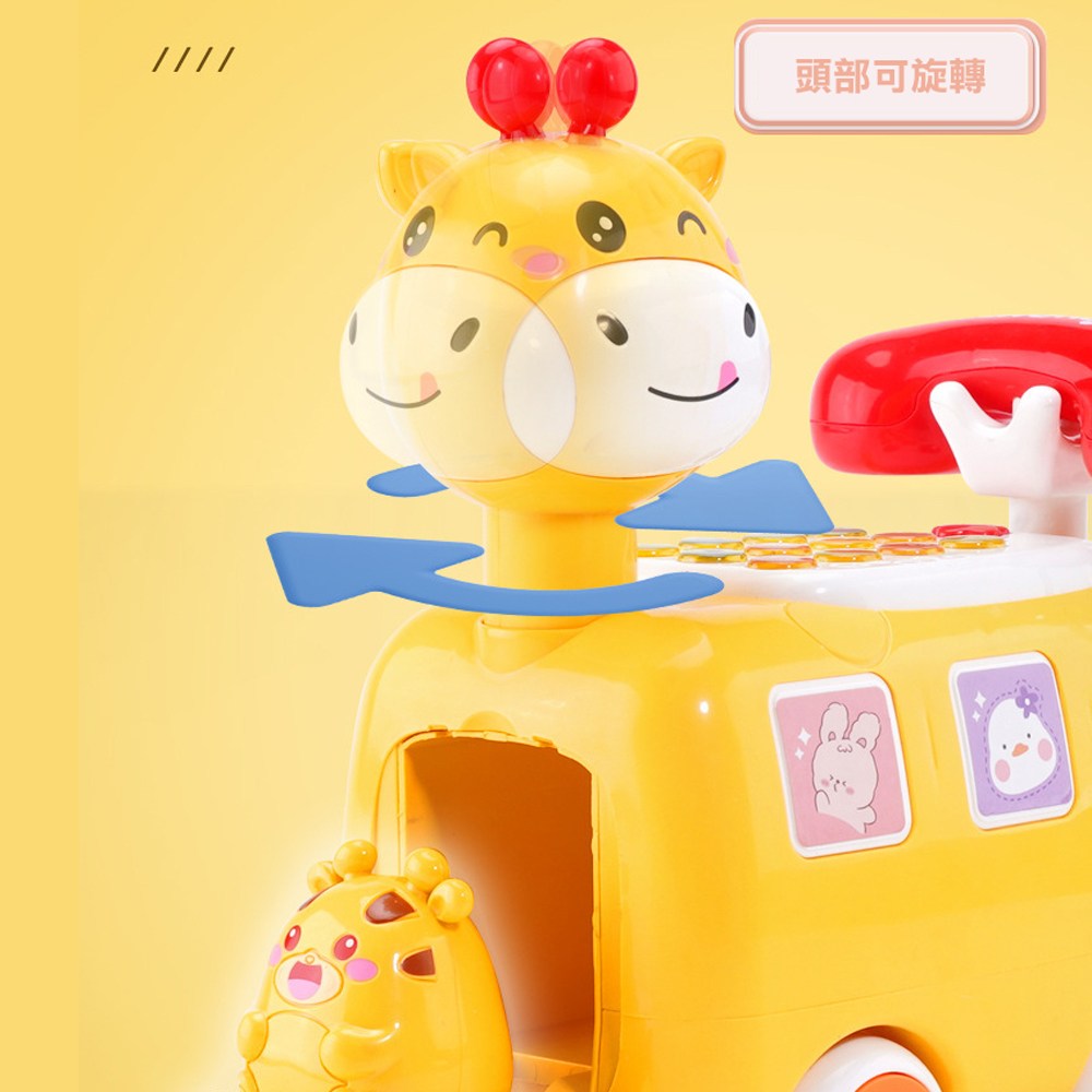 - 這款長頸鹿電話車玩具,透過多種音效與數字互動,激發寶寶的早期啟蒙認知。