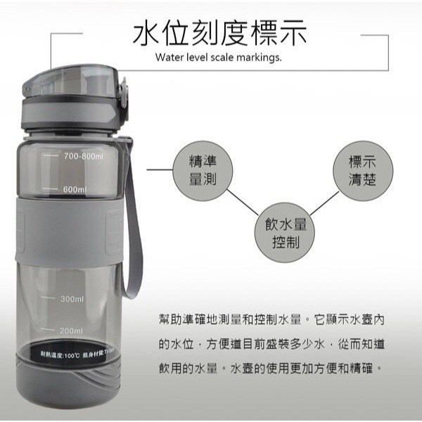 理想極緻運動水壺,1.2L大容量,灰色外觀,是您運動健身、戶外活動的理想之選。採用Tritan共聚酯材質,耐熱約100°C,讓您安心飲用。瓶身帶有水位刻度標示,方便您精準掌握飲水量,達成每日的補水目標。一鍵開啟設計,搭配防漏鎖扣,單手操作也輕鬆自如,讓您隨時隨地享受暢飲的樂趣。手提束帶設計,方便攜帶,無論是手提還是掛在背包上,都非常方便。