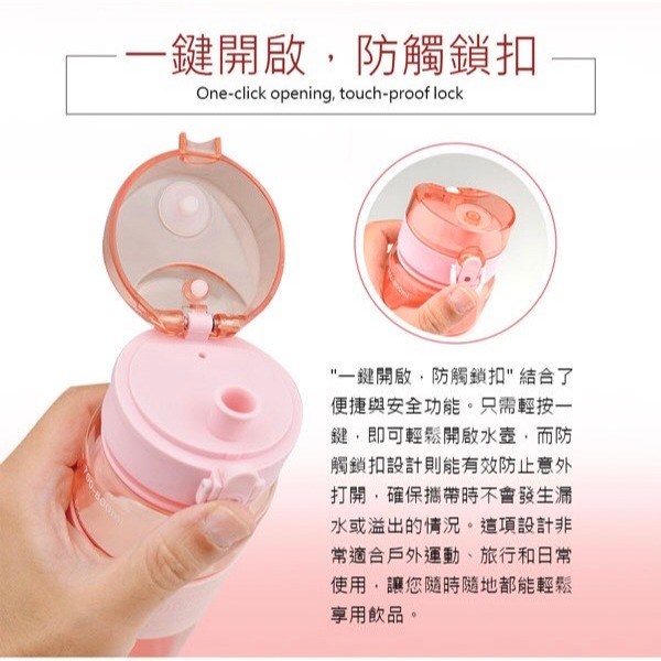 - 瓶身採用Tritan材質,輕巧耐用,方便攜帶,讓您隨時隨地享受健康飲水。
