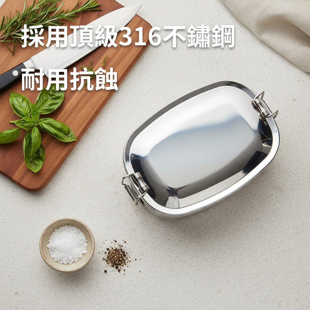 採用頂級316不鏽鋼材質,耐酸鹼、抗腐蝕,讓您安心盛裝各式料理。16公分方形設計,容量適中,方便攜帶,無論上班、上學或野餐都適用。盒內分隔設計,可將飯菜分開盛裝,避免味道混雜,保持食物美味。緊密盒蓋設計,保持包內清潔。讓您隨時隨地享受健康美味的自製便當。