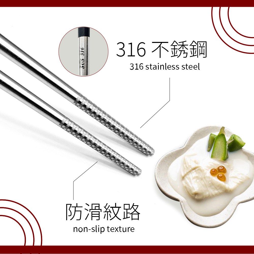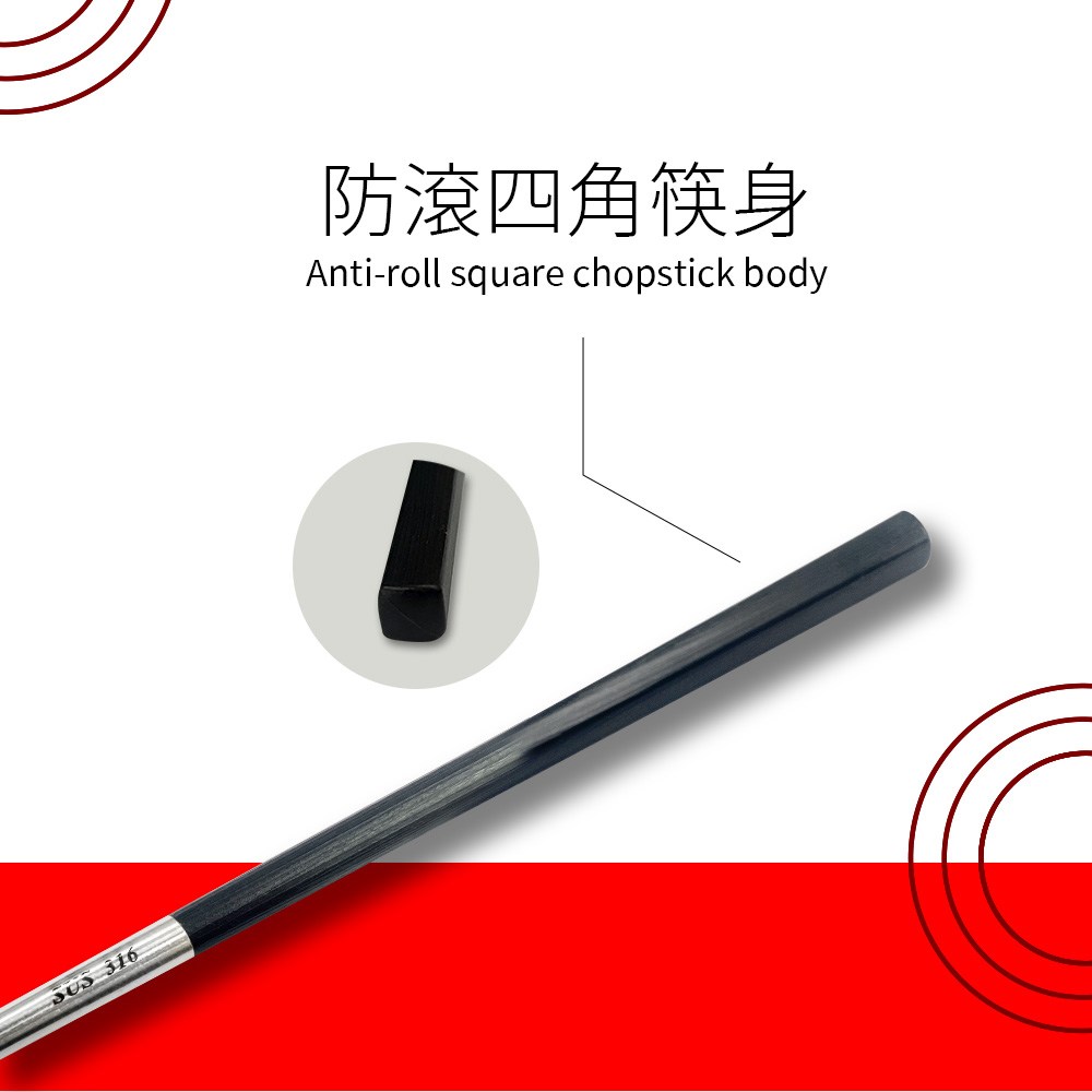 - 四方筷身設計,穩固防滑,輕鬆夾取食物,不再擔心筷子滾動。