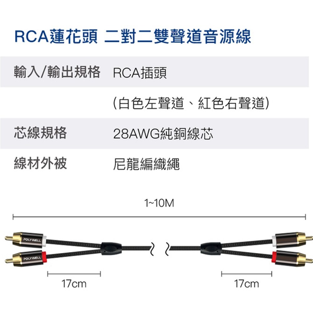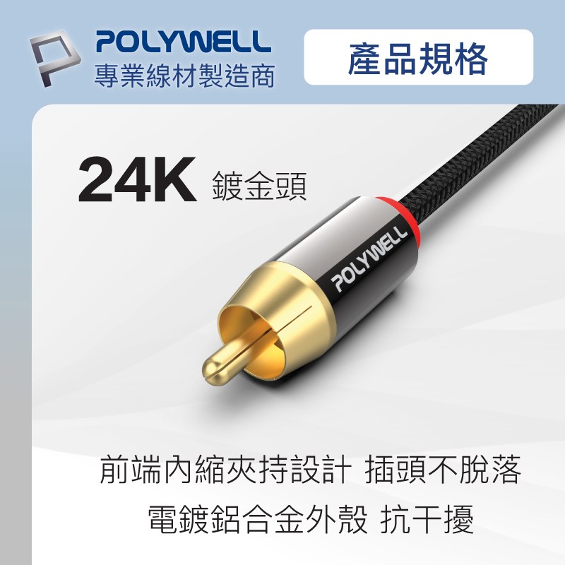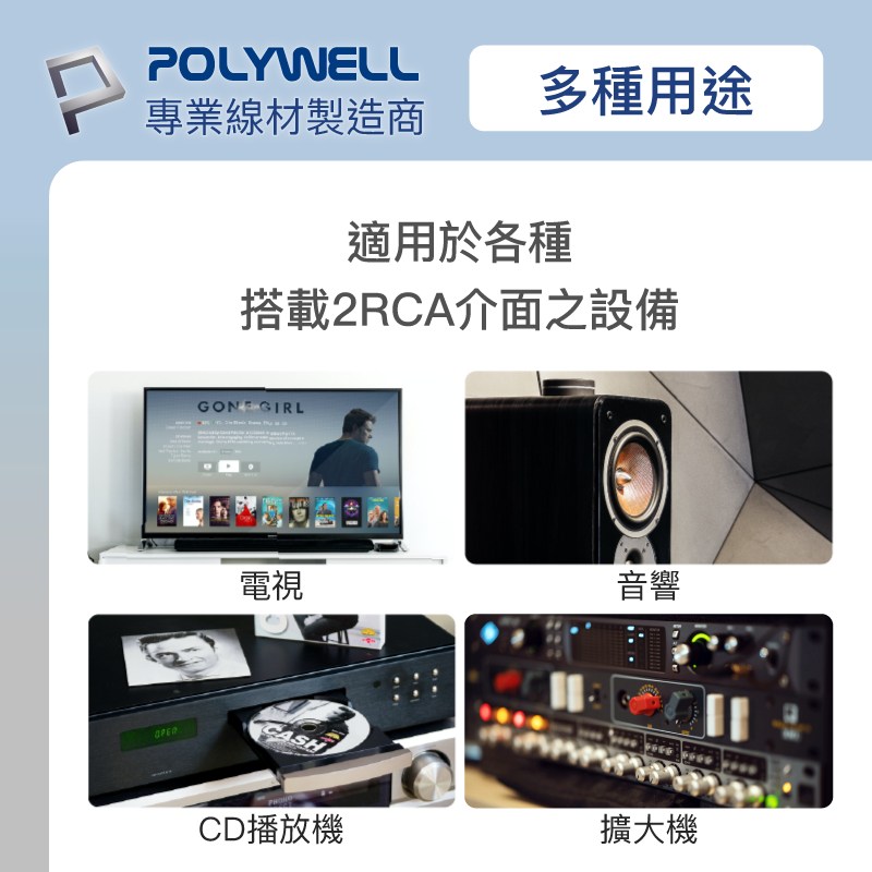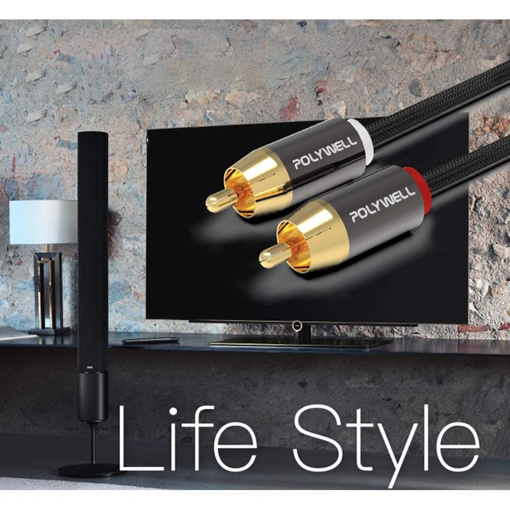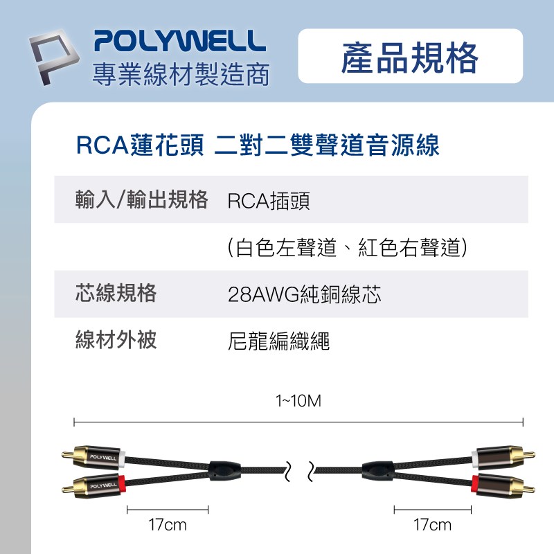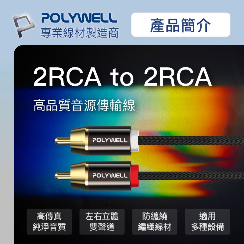 POLYWELL 雙RCA To 雙RCA 紅白立體聲音源線,為您帶來卓越的音頻體驗。這款3米長的音源線採用高品質材料和精湛工藝,確保音頻信號傳輸的穩定性和純淨度。28AWG純銅線芯搭配多股尼龍交叉編織外被,有效減少信號損耗和外部干擾,呈現清晰、細膩的音質。無論是連接電視、音響、CD播放機還是擴大機,都能輕鬆打造家庭劇院般的聽覺享受。紅白雙色RCA接頭設計,方便您輕鬆辨識左右聲道,享受立體環繞音效。