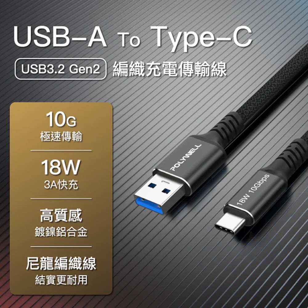 POLYWELL Type-A to C 編織充電線,是您快速充電和數據傳輸的理想選擇。這款50公分的黑色充電線採用USB3.2 Gen2技術,提供高達10G的傳輸速度,讓您能迅速傳輸大型檔案。它支援18W快速充電,能為您的設備快速補充電力。高密度尼龍編織線材不僅堅固耐用,延長使用壽命。無論是Android手機、平板電腦還是其他Type-C設備,這款通用充電線都能完美相容,讓您隨時隨地享受便捷的充電和數據傳輸體驗。