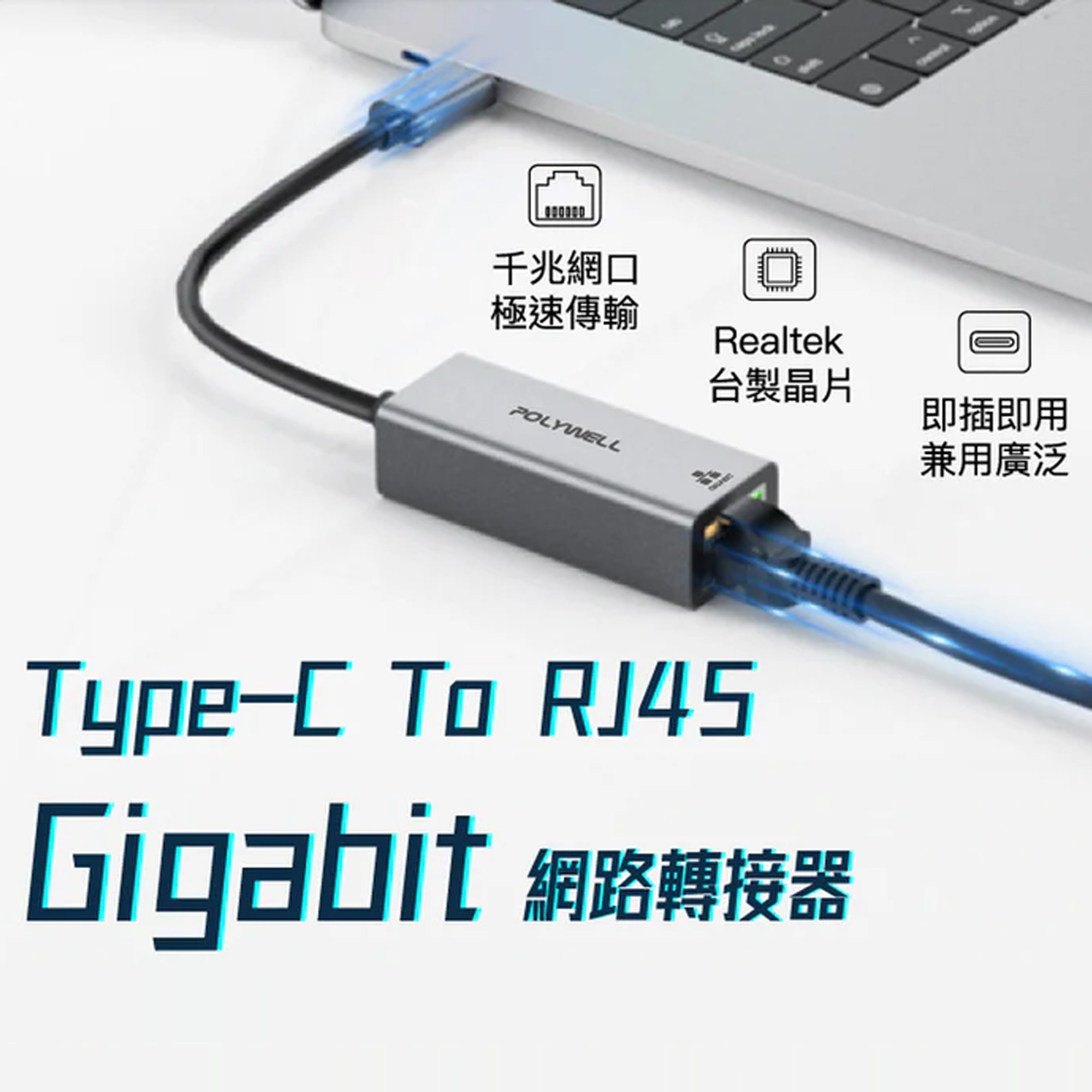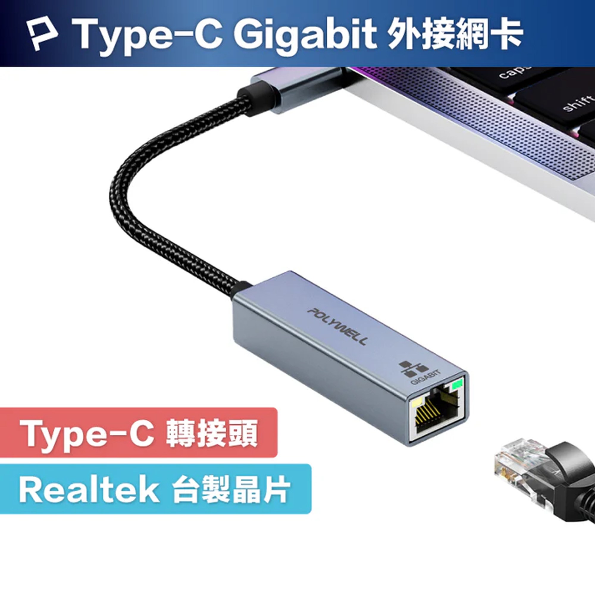 POLYWELL 寶利威爾 USB3.0 Type-C 1G千兆外接網卡,型號PW15-T02-A046,為您的設備提供快速穩定的網路連接。這款網卡採用USB 3.0 Type-C接口,傳輸速度高達1Gbps,讓您享受流暢的線上體驗。鋁合金外殼堅固耐用,有效散熱,確保長時間穩定運行。支援Windows、Mac和Android系統,隨插即用,無需額外驅動程式,方便快捷。無論是辦公還是娛樂,都能滿足您的網路需求。